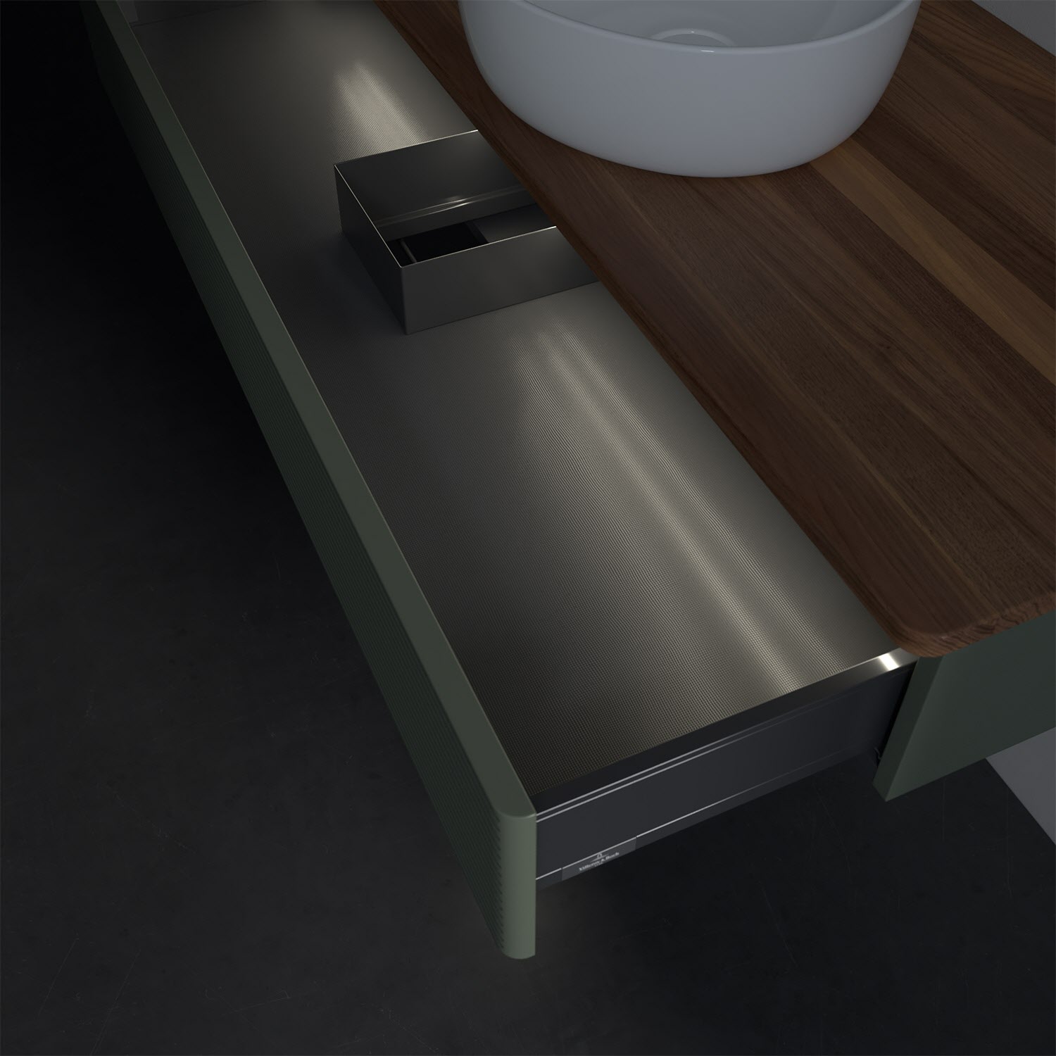 Villeroy & Boch Antao Waschbeckenunterschrank, 120 x 19 cm, 1 Auszug mit LED-Licht, Front mit Struktur, ohne Hahnloch, für Waschtisch mittig