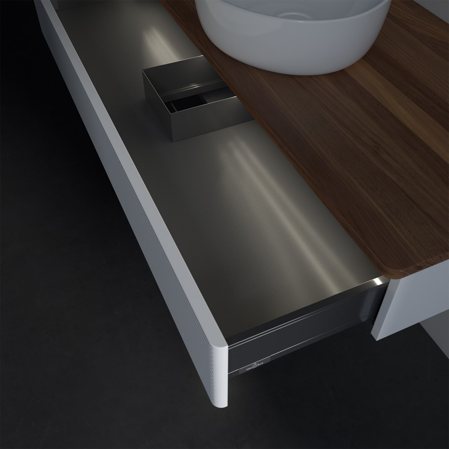 Villeroy & Boch Antao Waschbeckenunterschrank, 120 x 19 cm, 1 Auszug mit LED-Licht, Front mit Struktur, ohne Hahnloch, für Waschtisch mittig