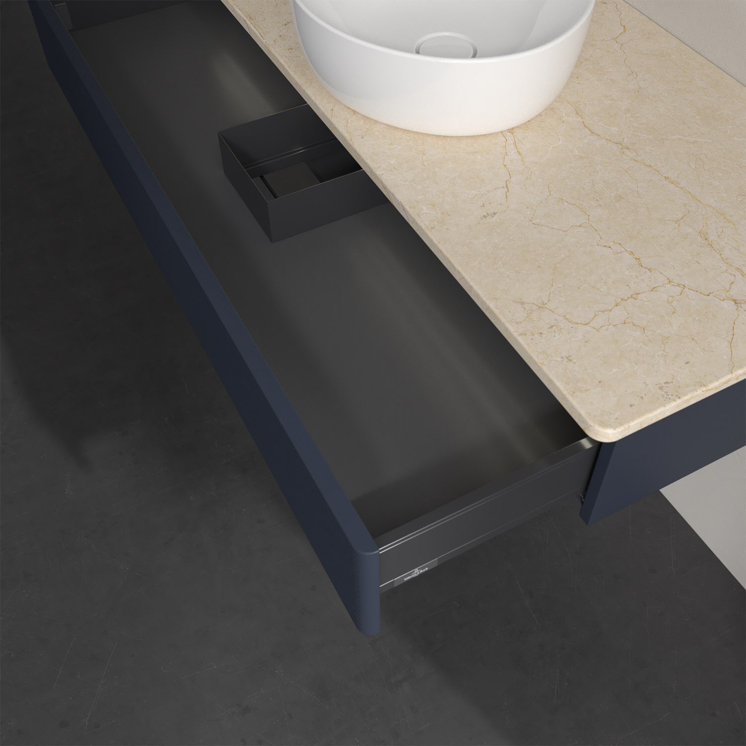 - kein Umfallen oder Verrutschen von Pflegeprodukten in den Schubladen dank rutschhemmendem Boden
