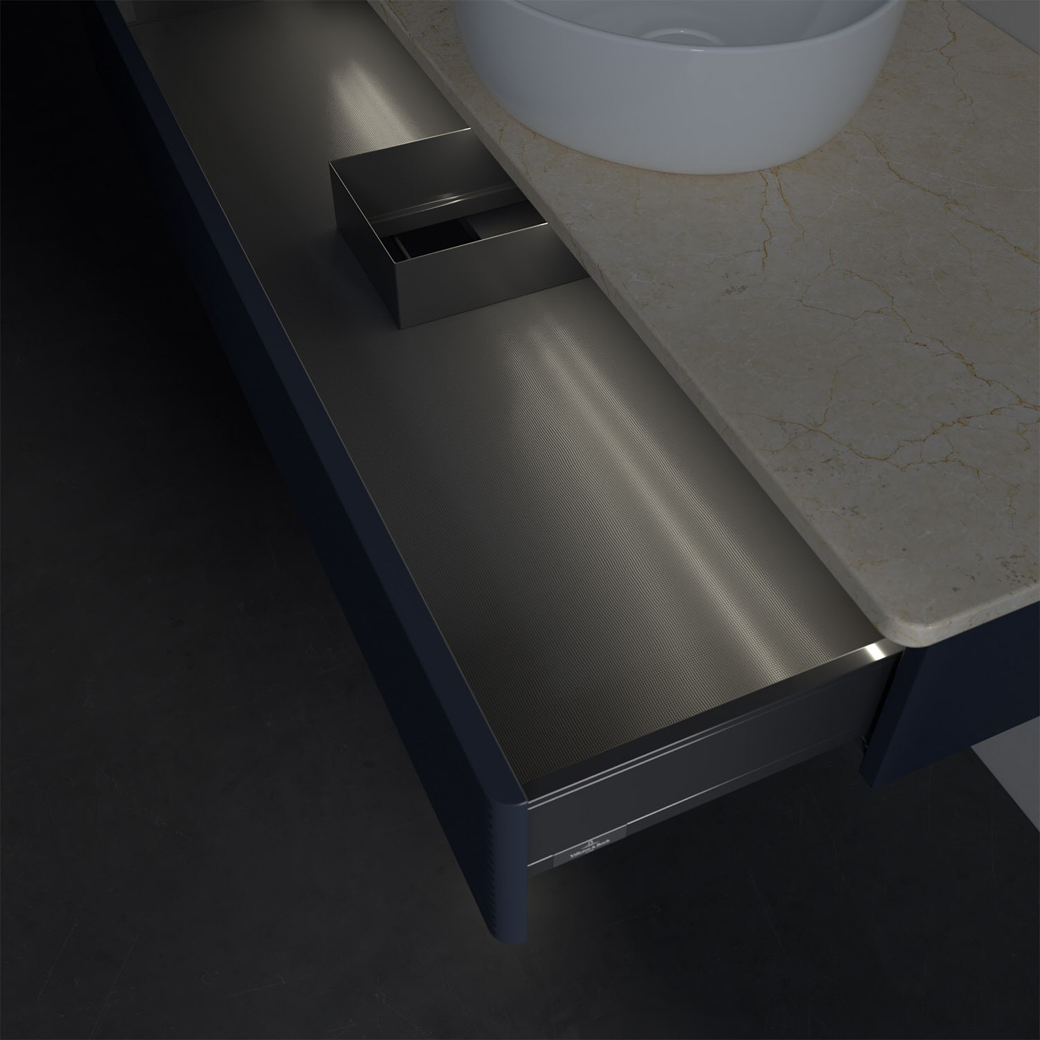 Villeroy & Boch Antao Waschbeckenunterschrank, 120 x 19 cm, 1 Auszug mit LED-Licht, Front mit Struktur, ohne Hahnloch, für Waschtisch mittig