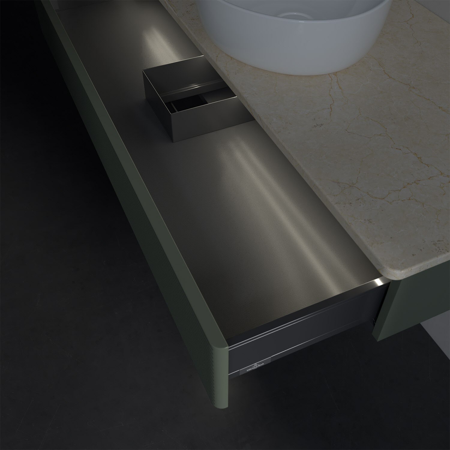 Villeroy & Boch Antao Waschbeckenunterschrank, 120 x 19 cm, 1 Auszug mit LED-Licht, Front mit Struktur, ohne Hahnloch, für Waschtisch mittig