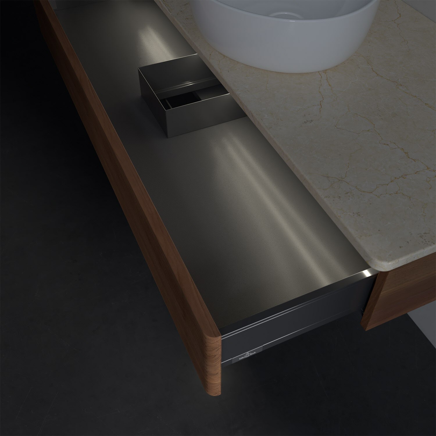 Villeroy & Boch Antao Waschbeckenunterschrank, 120 x 19 cm, 1 Auszug mit LED-Licht, Front mit Struktur, ohne Hahnloch, für Waschtisch mittig