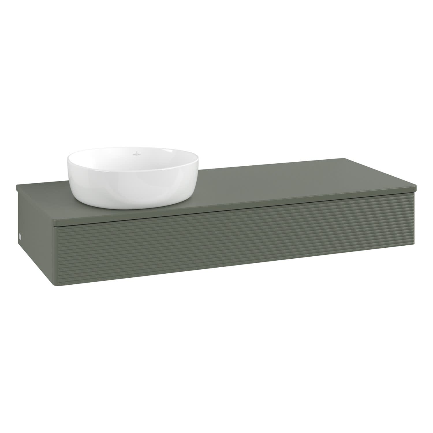 Villeroy & Boch Antao Waschbeckenunterschrank, 120 x 19 cm, 1 Auszug mit LED-Licht, Front mit Struktur, ohne Hahnloch, für Waschtisch links