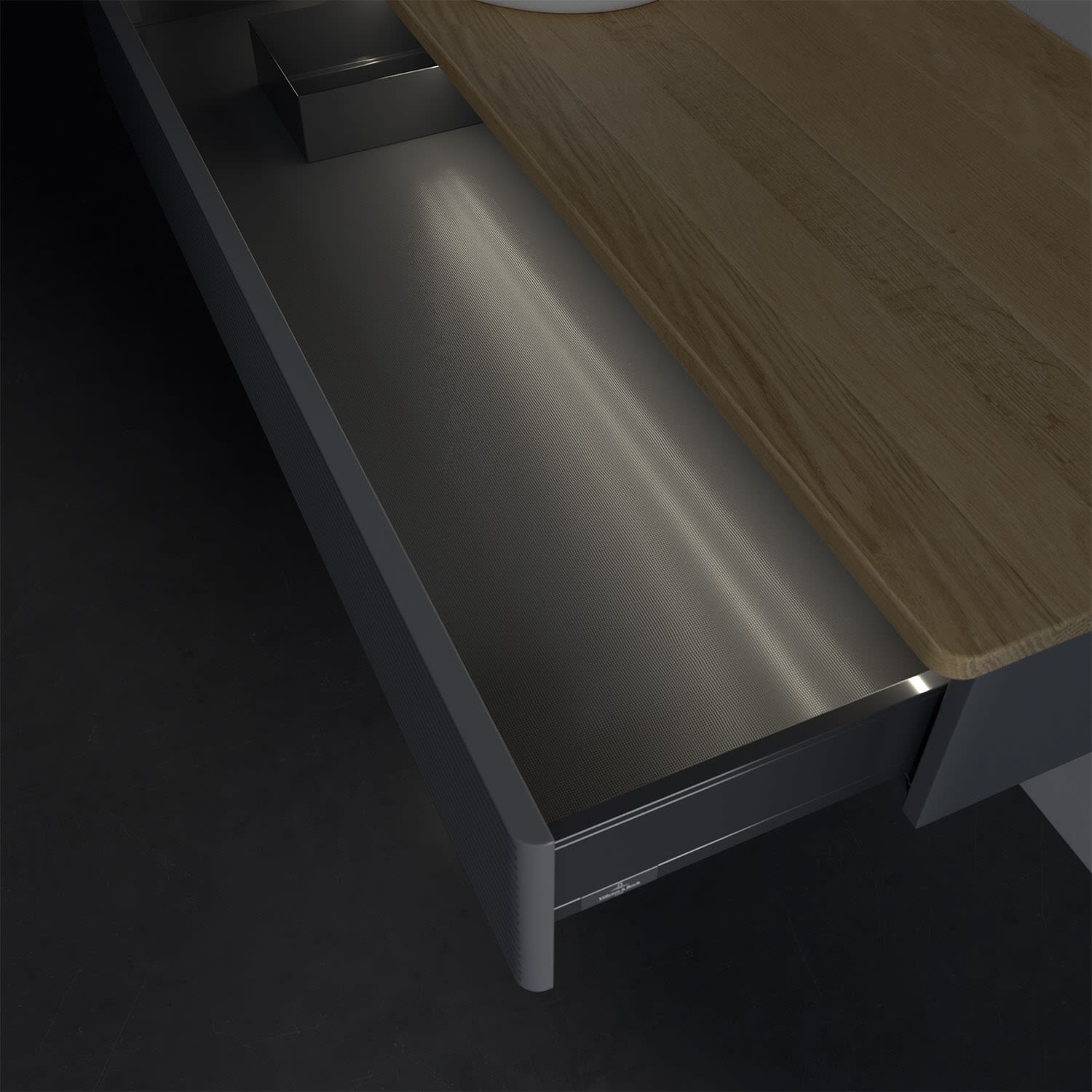 Villeroy & Boch Antao Waschbeckenunterschrank, 120 x 19 cm, 1 Auszug mit LED-Licht, Front mit Struktur, ohne Hahnloch, für Waschtisch links