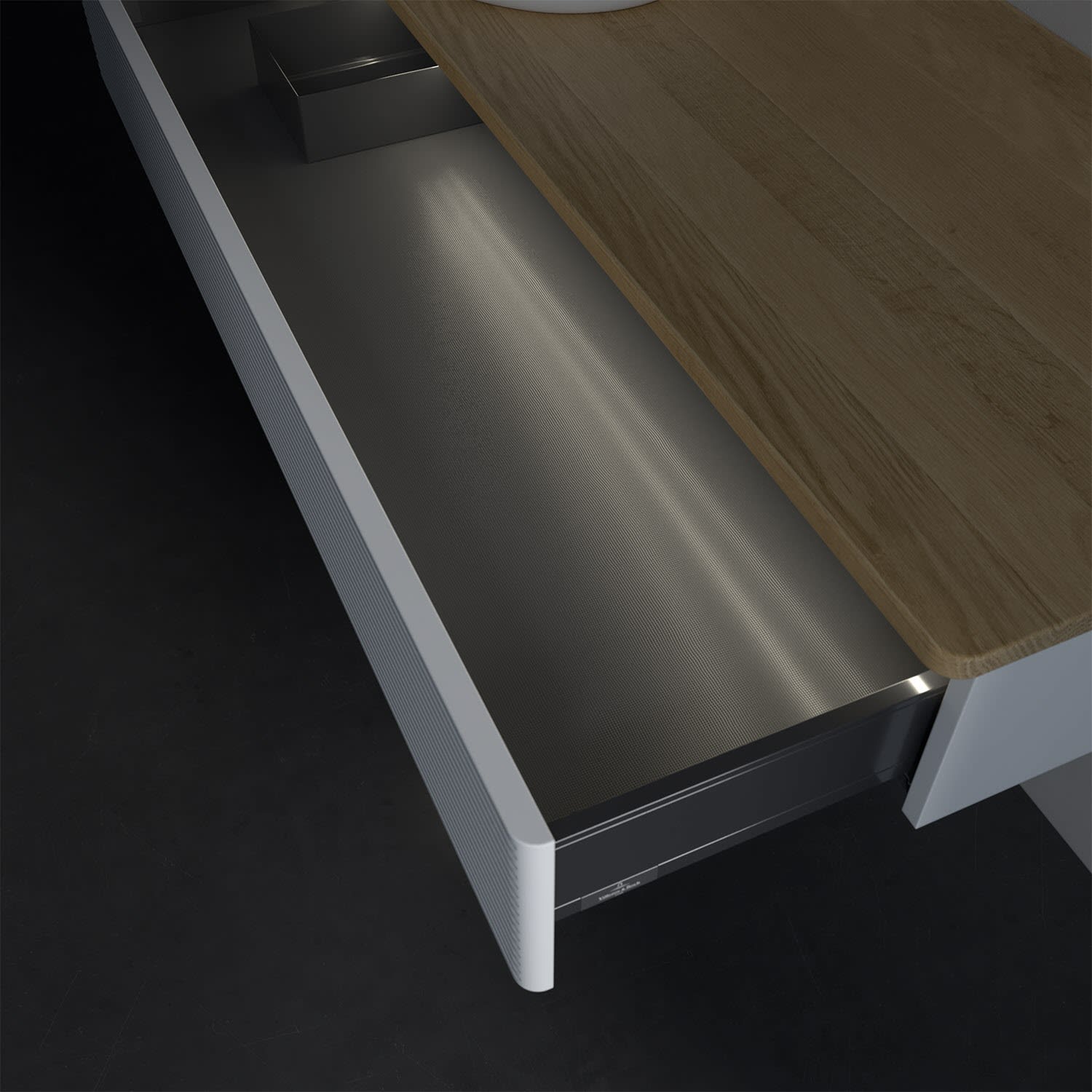 - in Schublade integrierte LED-Leiste mit warmweißem Licht zur Beleuchtung des Innenlebens