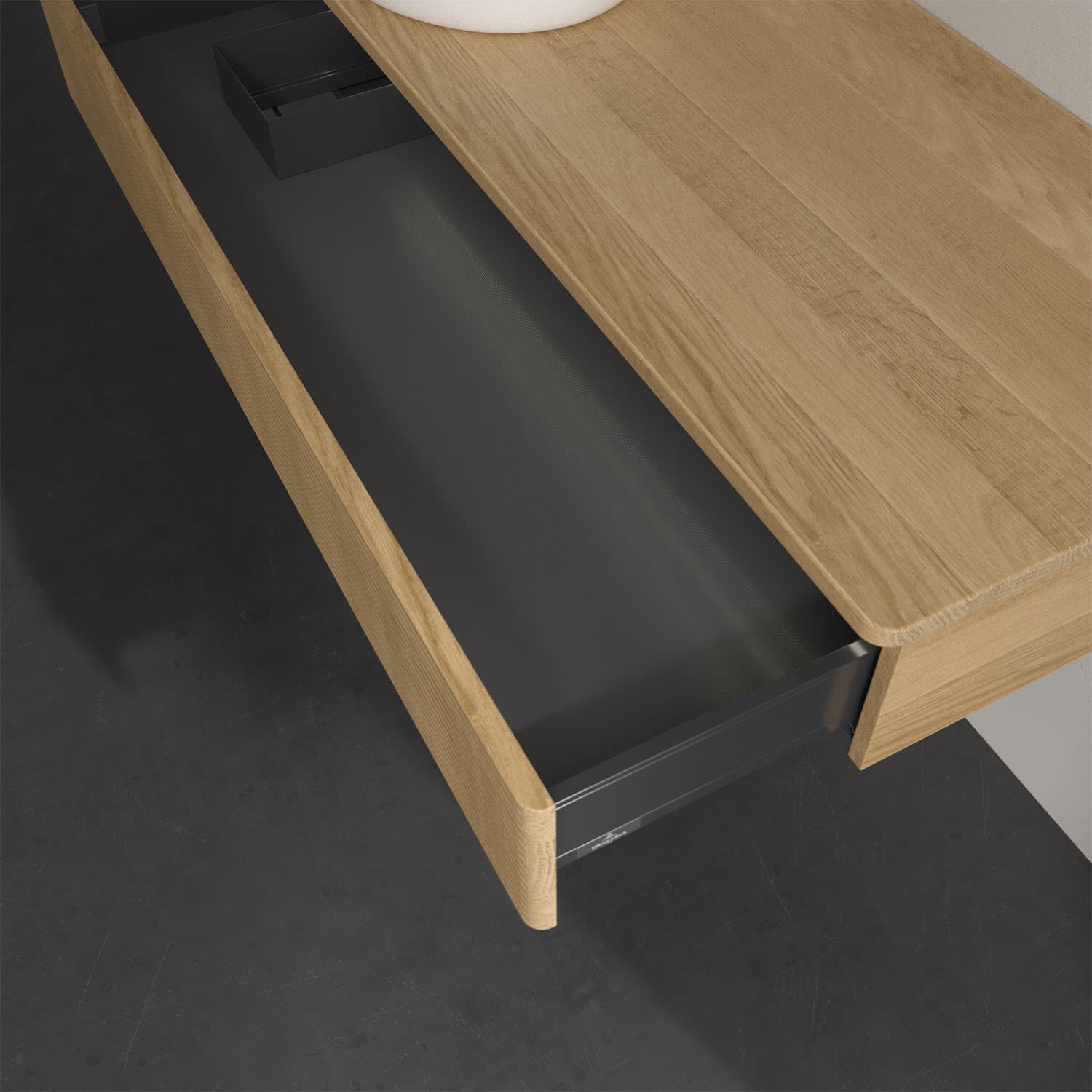 - kein Umfallen oder Verrutschen von Pflegeprodukten in den Schubladen dank rutschhemmendem Boden