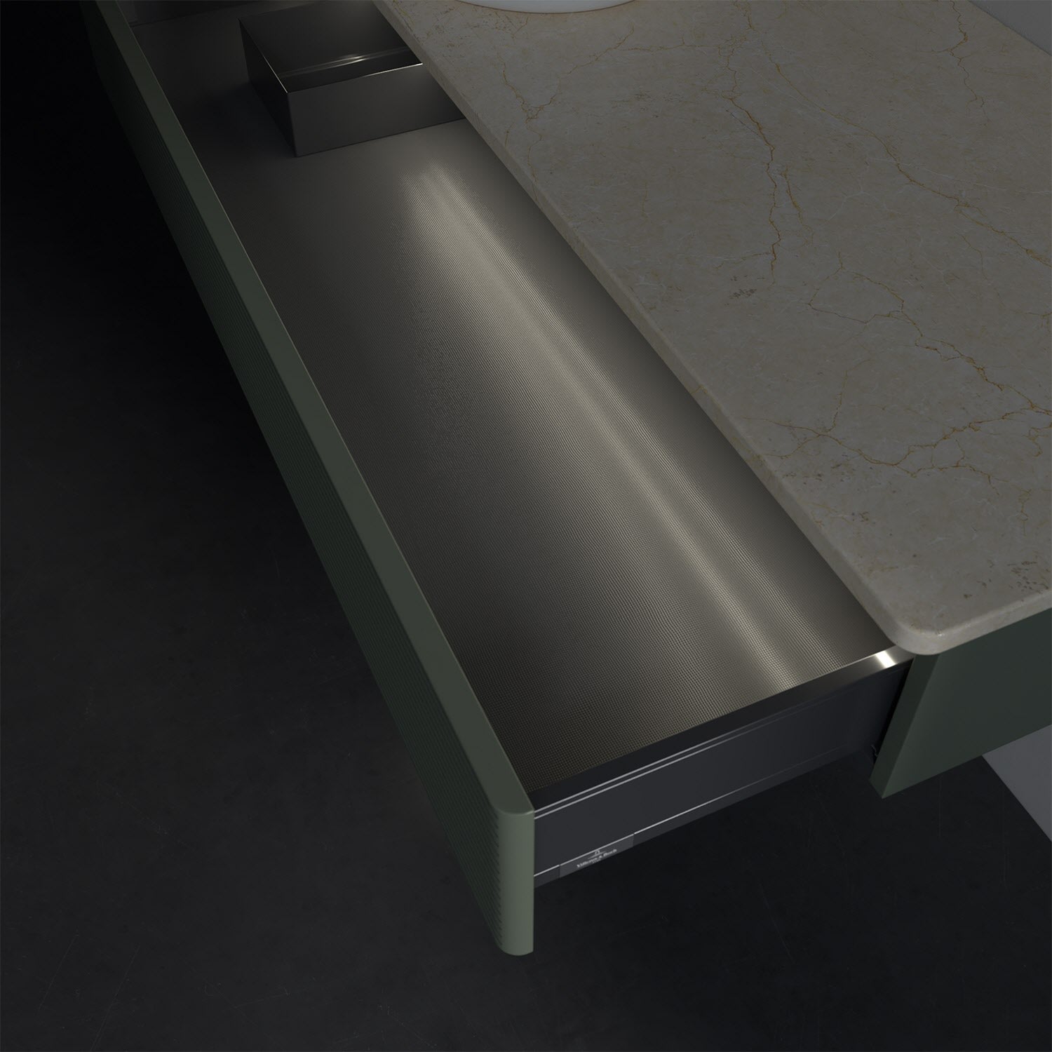 - kein Umfallen oder Verrutschen von Pflegeprodukten in den Schubladen dank rutschhemmendem Boden