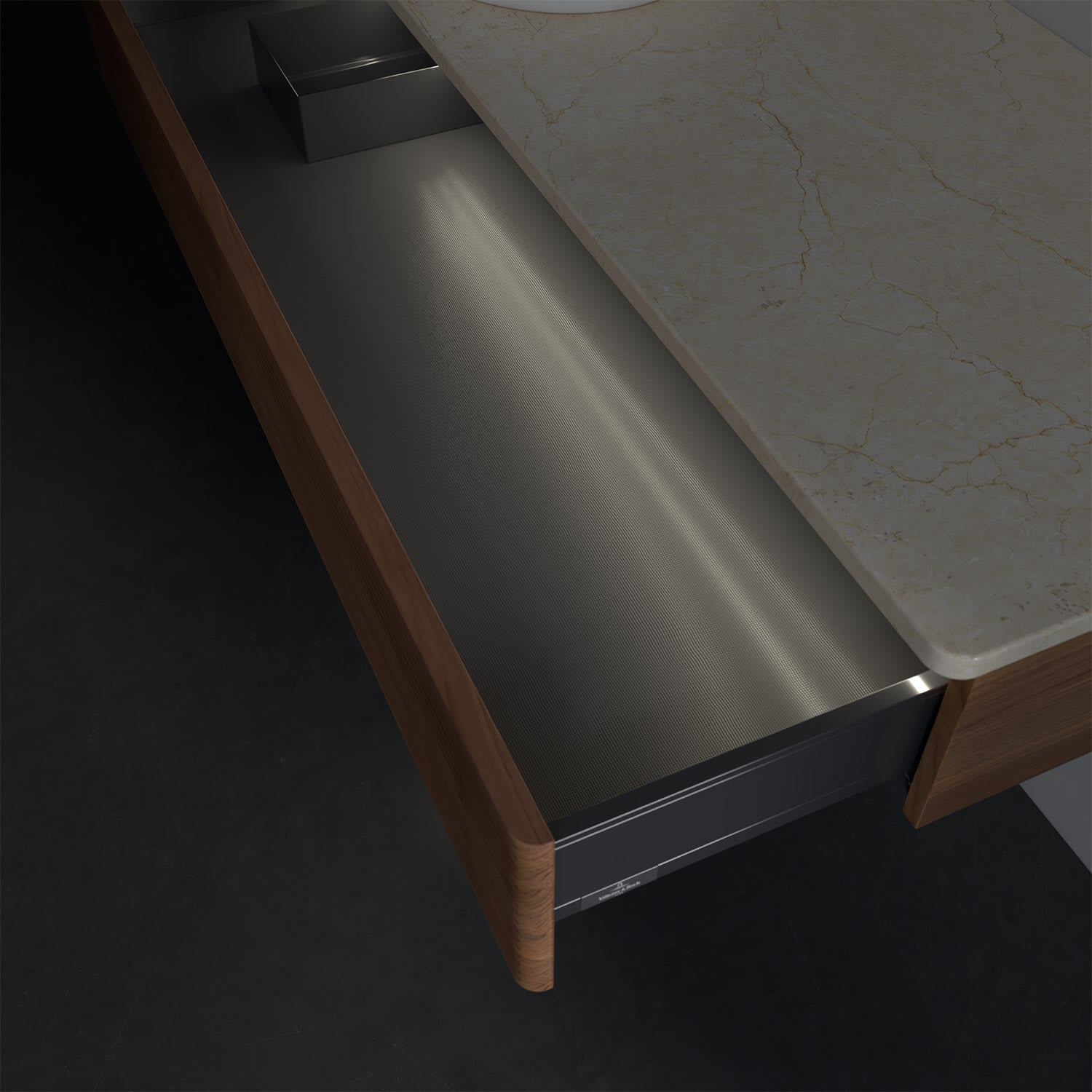 Villeroy & Boch Antao Waschbeckenunterschrank, 120 x 19 cm, 1 Auszug mit LED-Licht, Front mit Struktur, ohne Hahnloch, für Waschtisch links