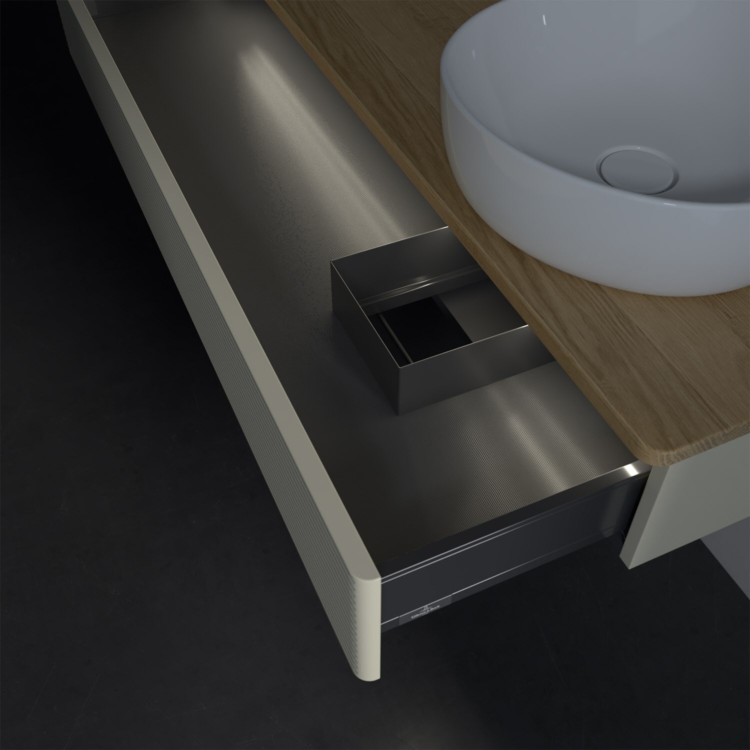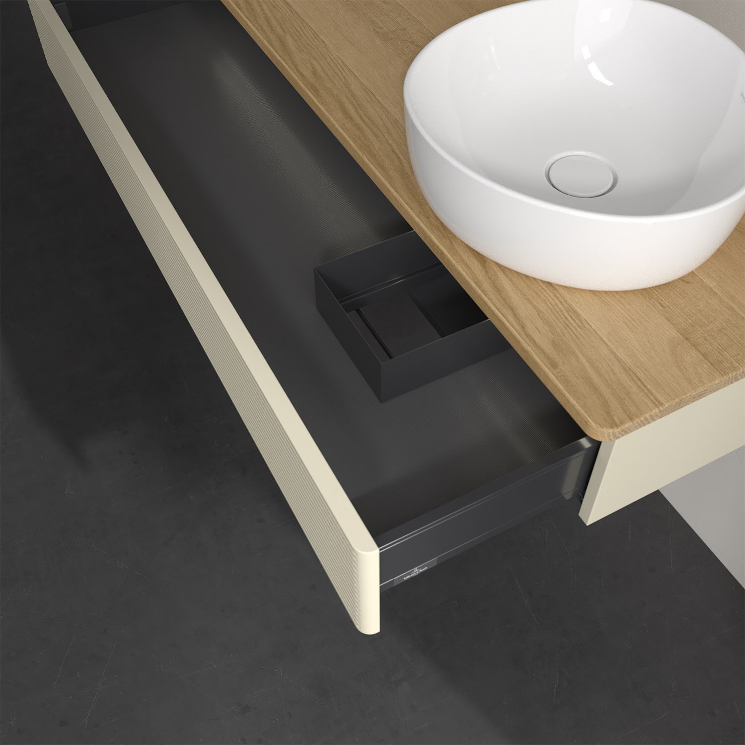 Villeroy & Boch Antao Waschbeckenunterschrank, 120 x 19 cm, 1 Auszug mit LED-Licht, Front mit Struktur, ohne Hahnloch, für Waschtisch rechts