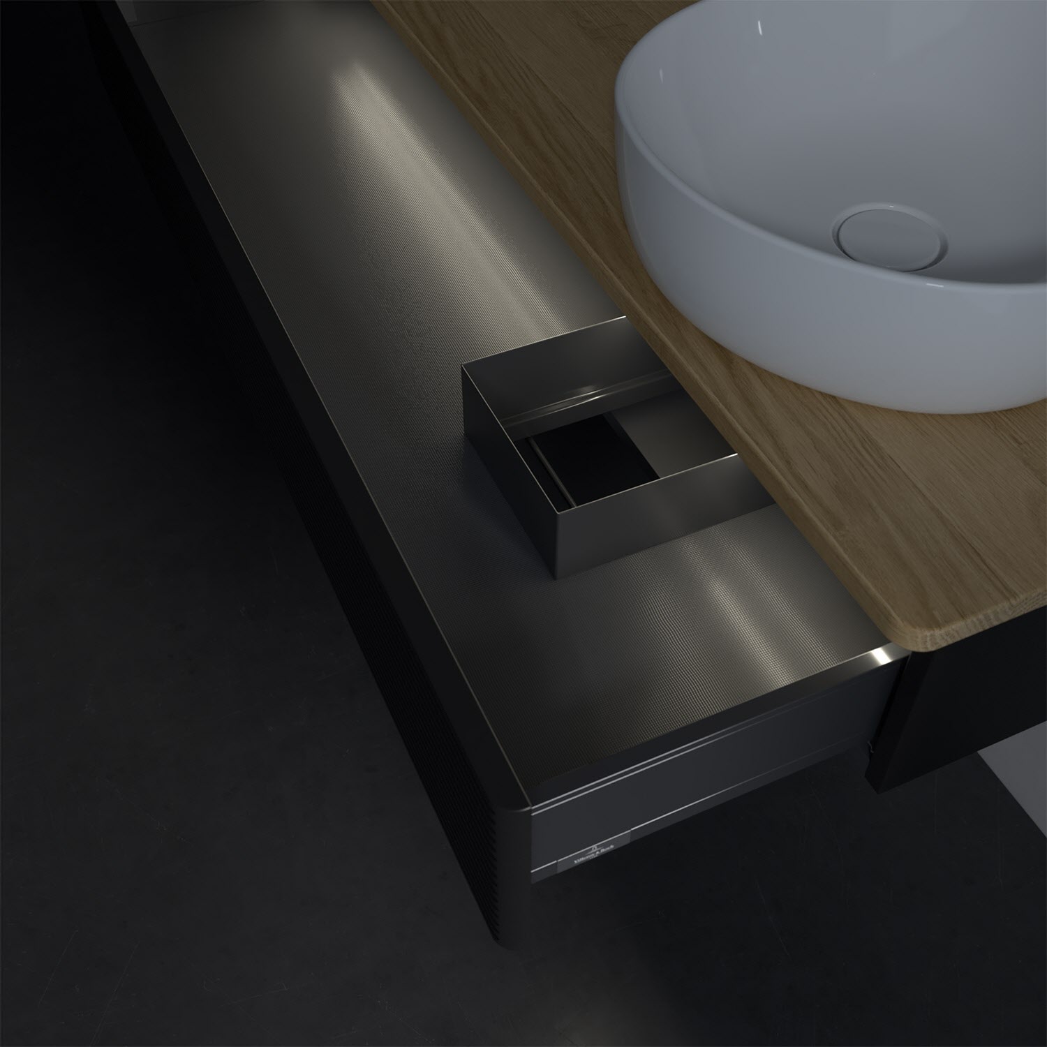 - in Schublade integrierte LED-Leiste mit warmweißem Licht zur Beleuchtung des Innenlebens