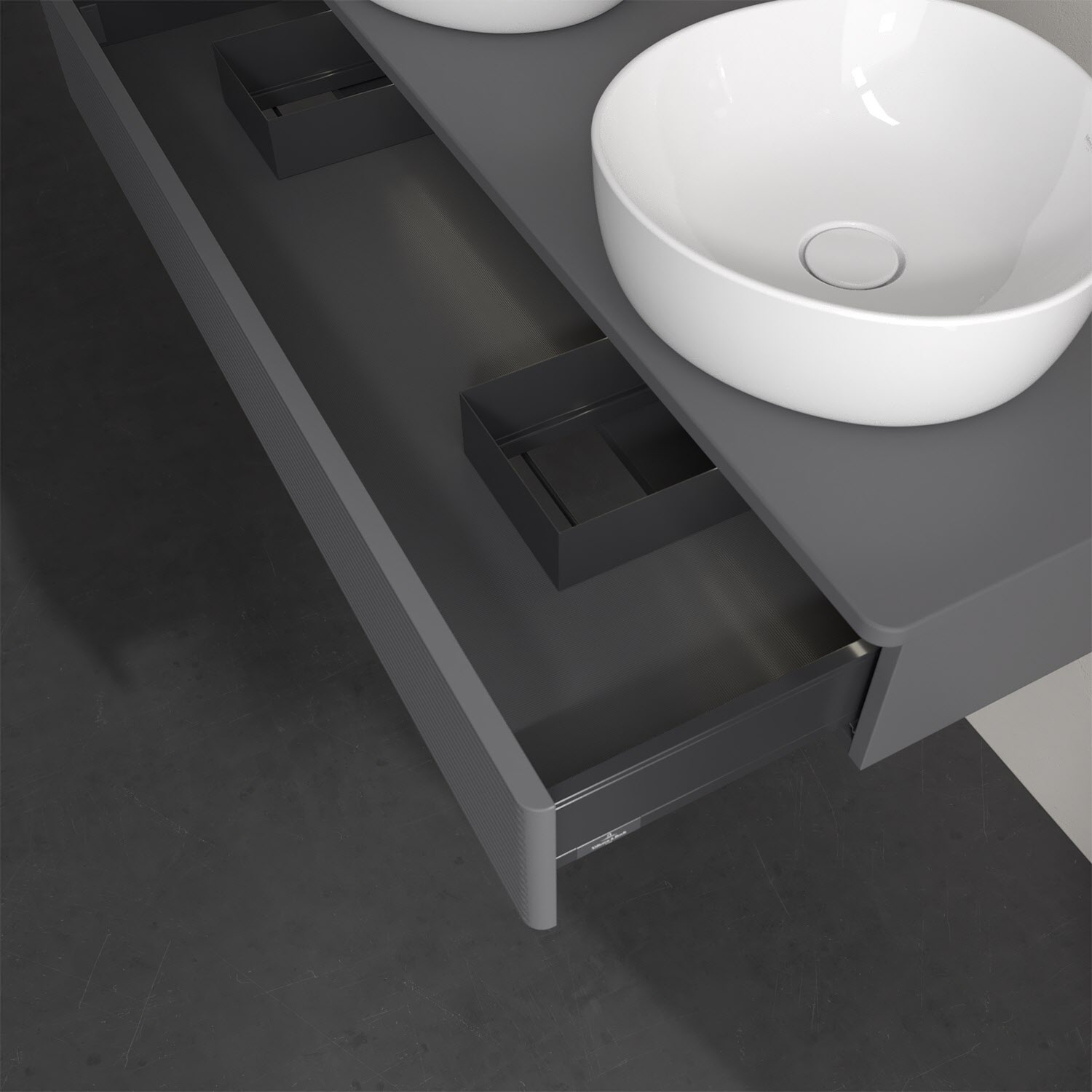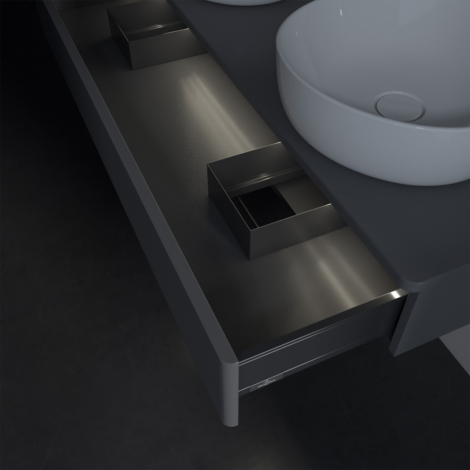 Villeroy & Boch Antao Waschbeckenunterschrank, 120 x 19 cm, 1 Auszug mit LED-Licht, Front mit Struktur, ohne Hahnloch, für Waschtisch links und rechts