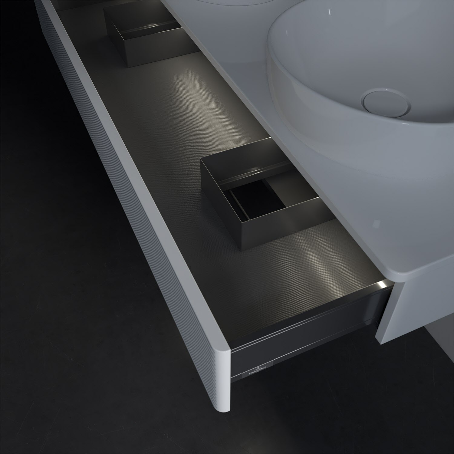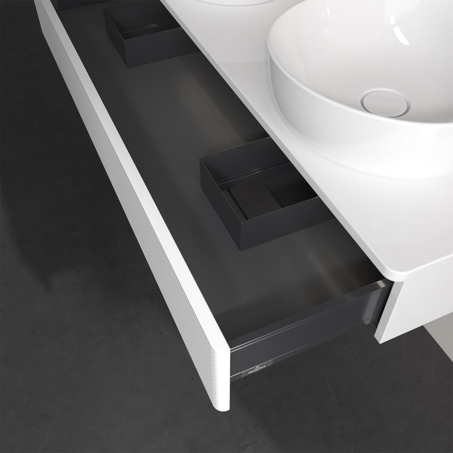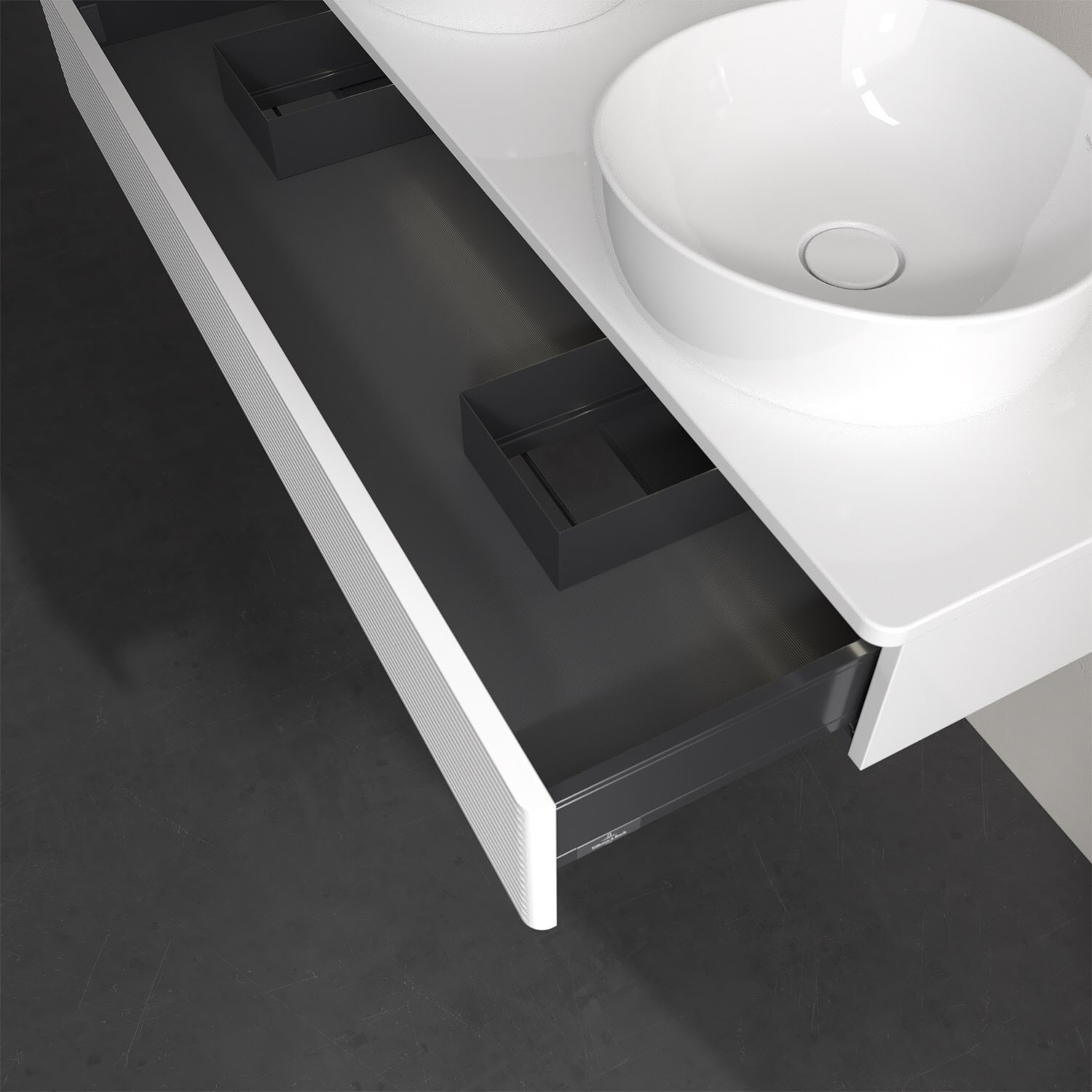 Villeroy & Boch Antao Waschbeckenunterschrank, 120 x 19 cm, 1 Auszug mit LED-Licht, Front mit Struktur, ohne Hahnloch, für Waschtisch links und rechts