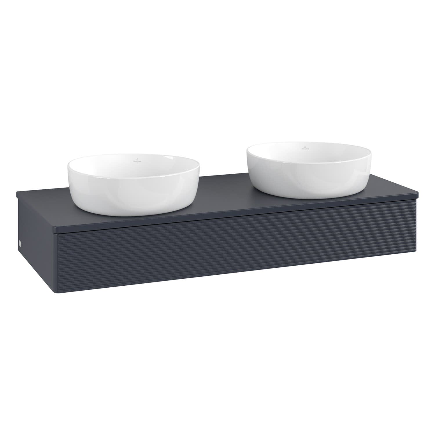 Villeroy & Boch Antao Waschbeckenunterschrank, 120 x 19 cm, 1 Auszug mit LED-Licht, Front mit Struktur, ohne Hahnloch, für Waschtisch links und rechts