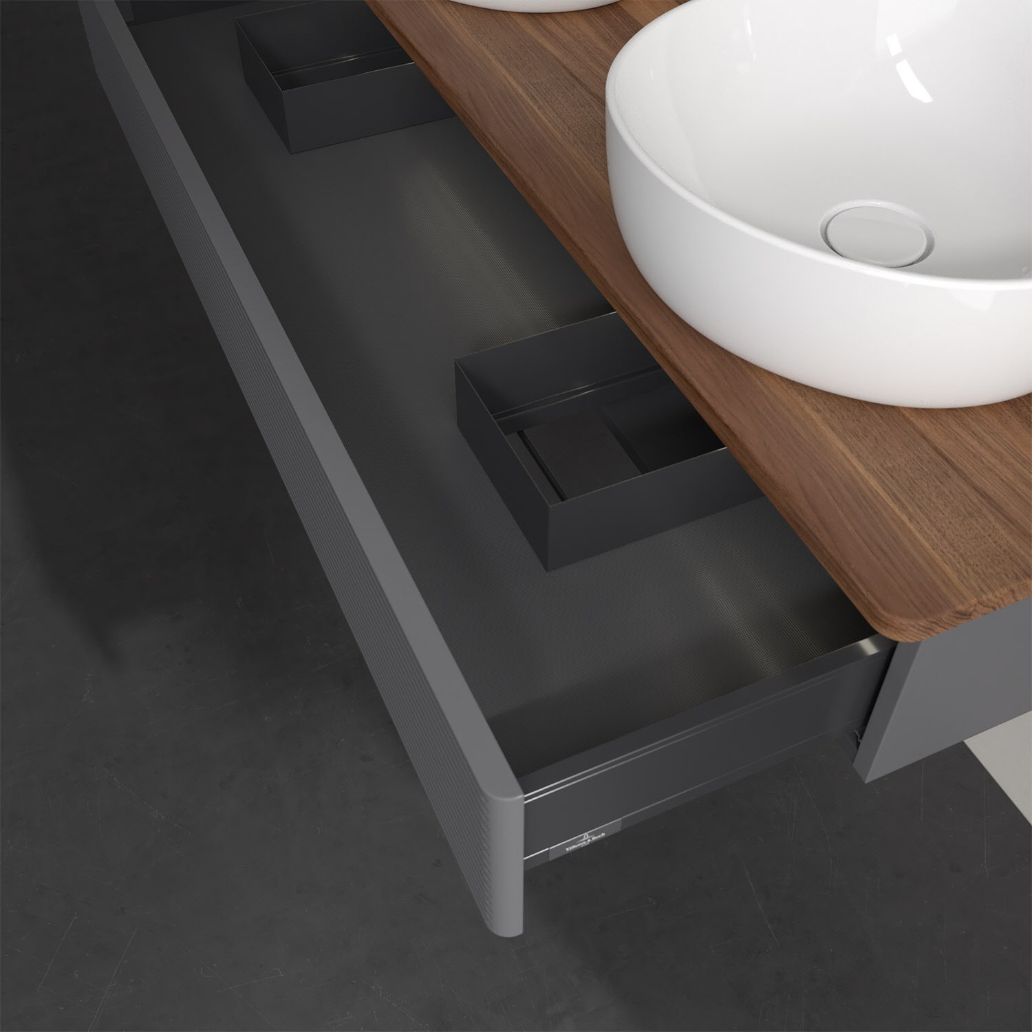 Villeroy & Boch Antao Waschbeckenunterschrank, 120 x 19 cm, 1 Auszug mit LED-Licht, Front mit Struktur, ohne Hahnloch, für Waschtisch links und rechts