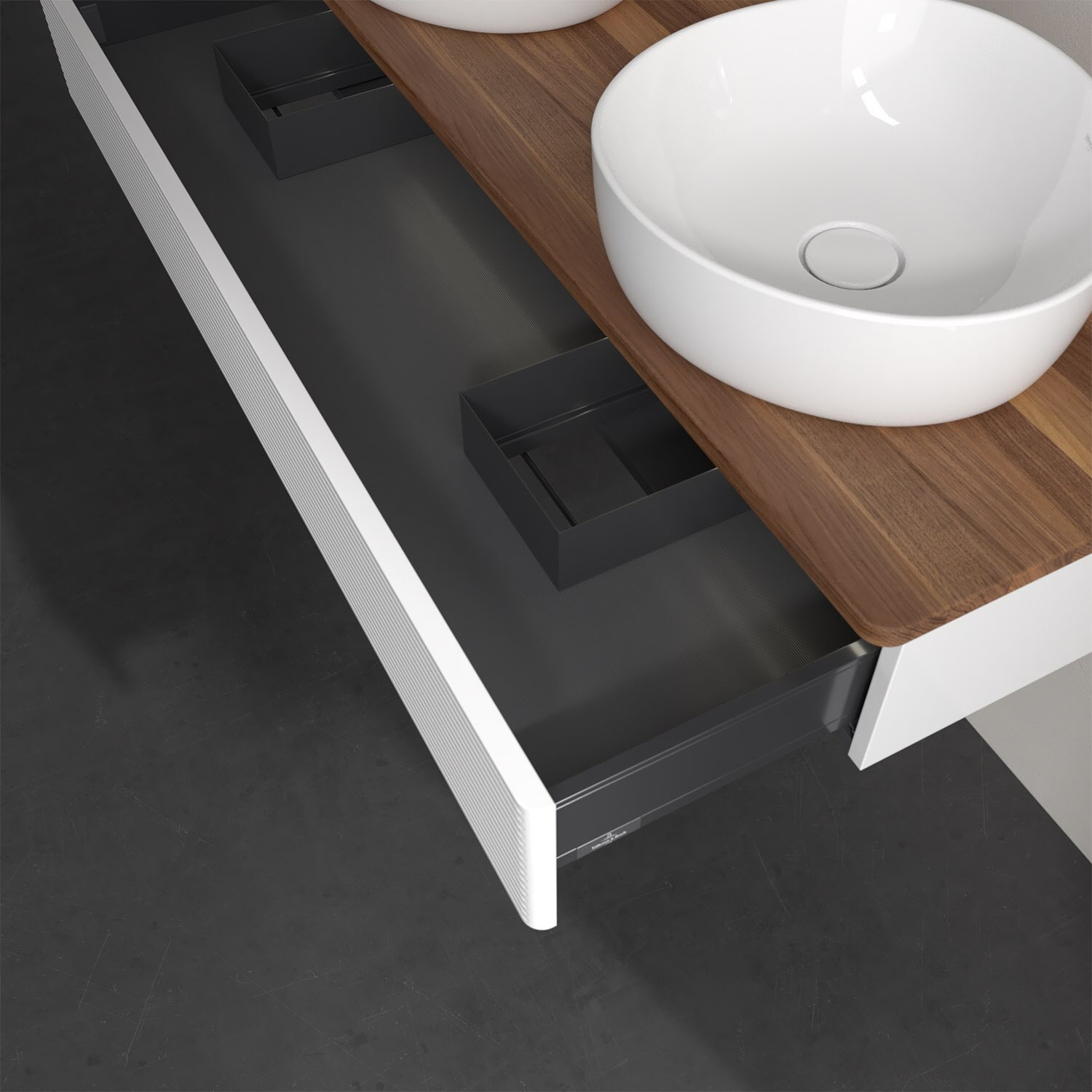 - kein Umfallen oder Verrutschen von Pflegeprodukten in den Schubladen dank rutschhemmendem Boden