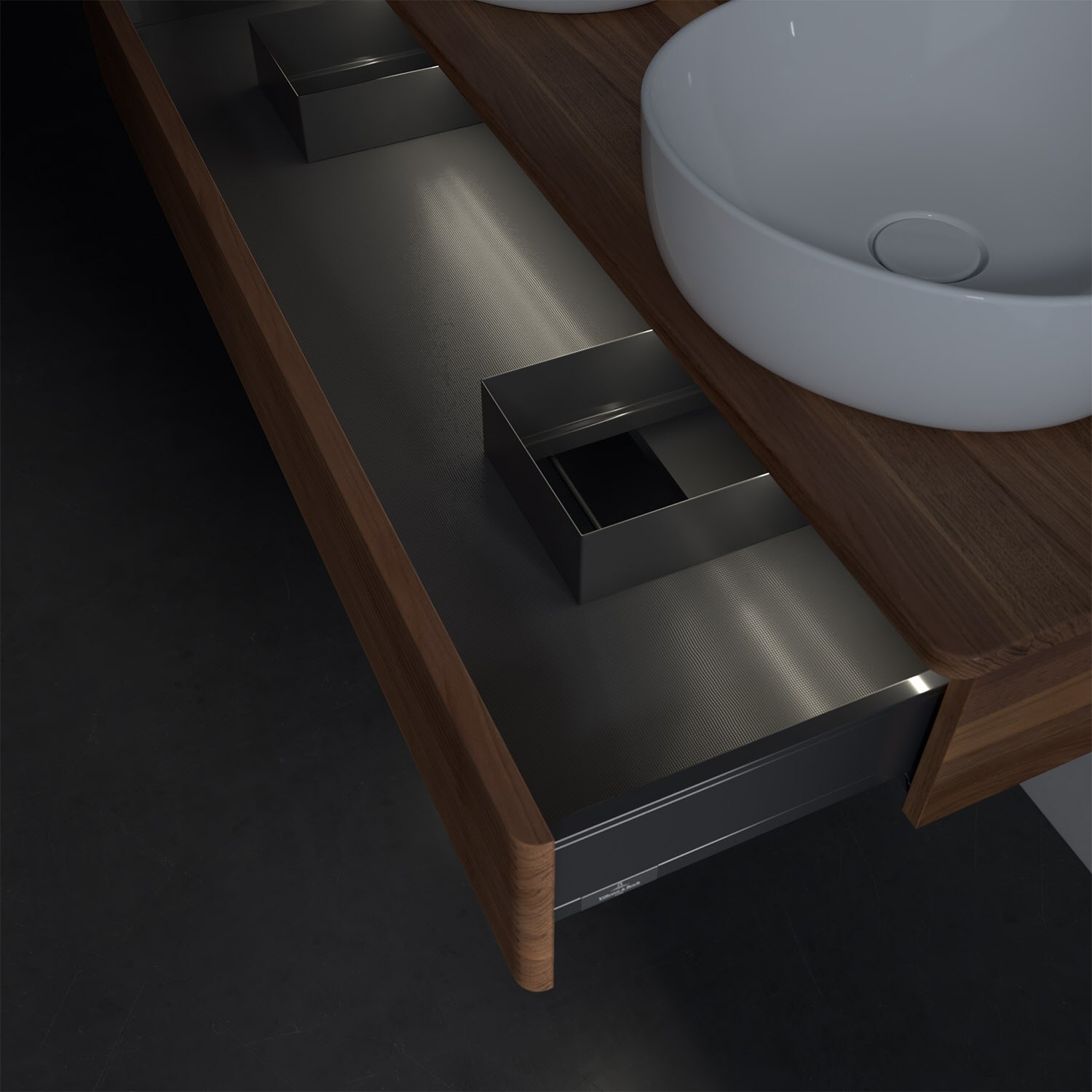 Der wandhängende Antao Waschtischunterschrank von Villeroy & Boch bietet nicht nur jede Menge Stauraum – er ist dank seines naturinspirierten Designs mit seinen abgerundeten Kanten auch noch besonders stilvoll und schafft eine gemütliche Atmosphäre im Badezimmer. Kombiniert mit zwei passenden Aufsatzwaschtischen also die ideale Wahl. Der geräumige Auszug bietet viel Platz, um alles Notwendige zu verstauen und Ordnung zu halten. Öffnen lässt er sich durch leichten Druck auf die strukturierte Front. Dabei aktiviert sich übrigens die Auszugsbeleuchtung in angenehmem Warmweiß. Dank Vollauszug hat man immer alles im Blick und der Antirutschboden verhindert ein Umfallen oder Verrutschen der Gegenstände. Einfach clever! Für eine besonders leichte Pflege sorgt die mehrschichtig deckend lackierte Oberfläche. Bei der Ausführung in Massivholz wird dank des verarbeiteten Massivholzes jedes Möbel zu einem Unikat, das sich durch das lebendige Naturmaterial durch seine einzigartige Struktur und Maserung auszeichnet.