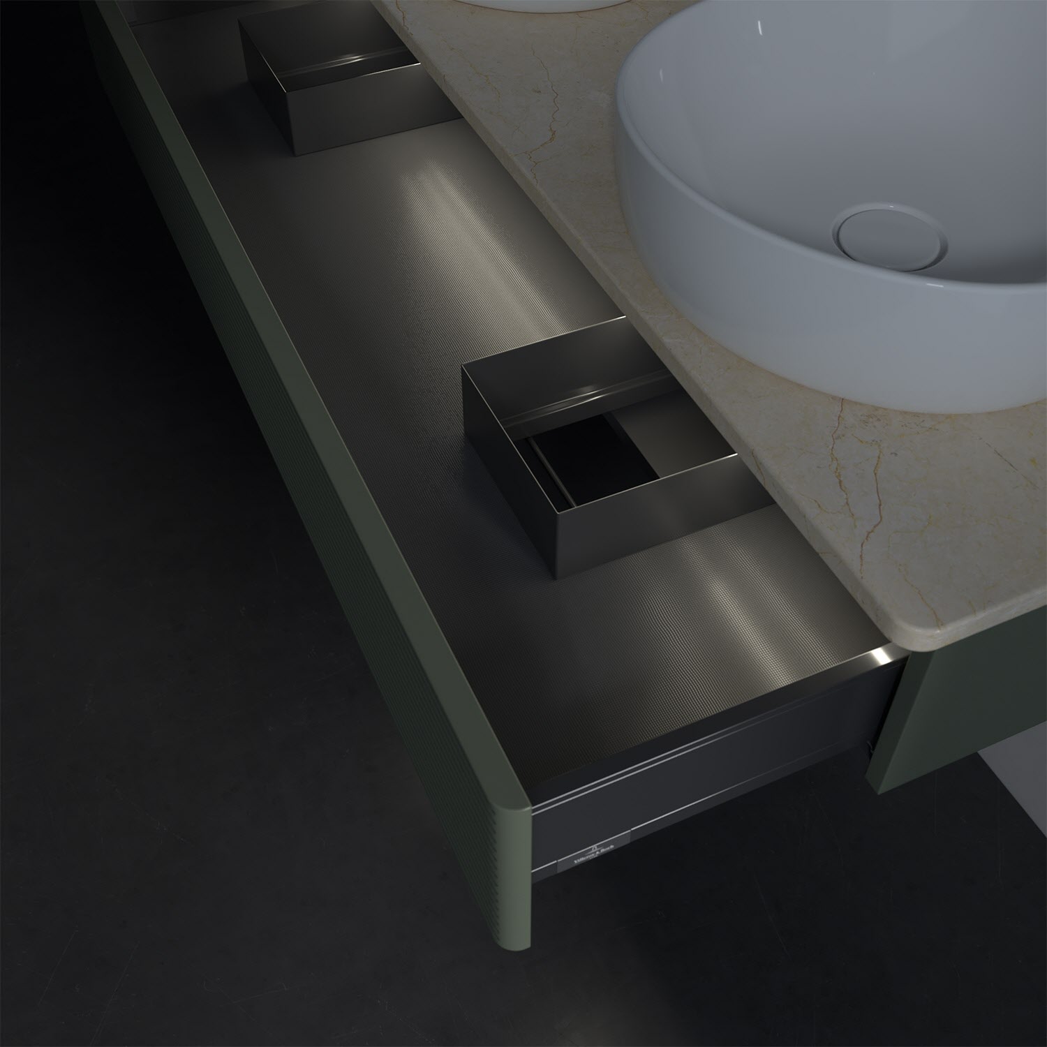 Villeroy & Boch Antao Waschbeckenunterschrank, 120 x 19 cm, 1 Auszug mit LED-Licht, Front mit Struktur, ohne Hahnloch, für Waschtisch links und rechts