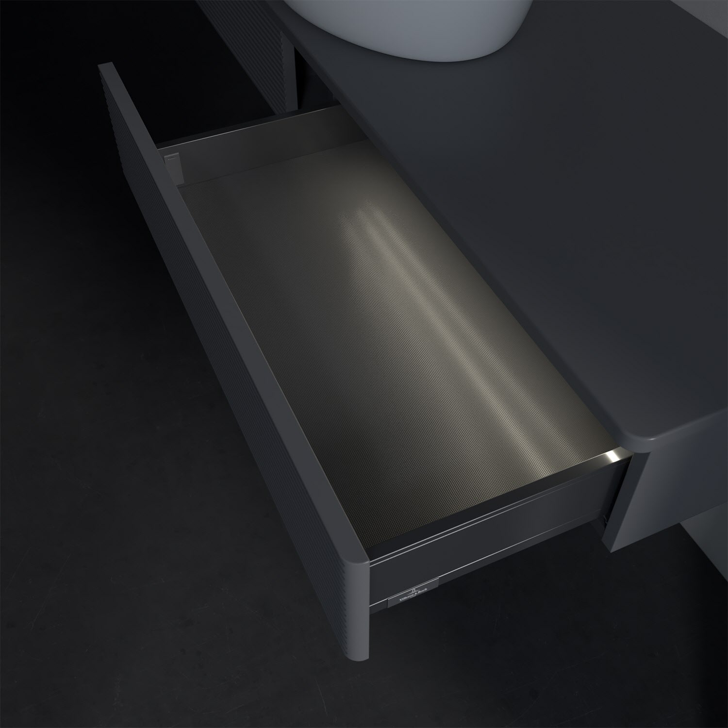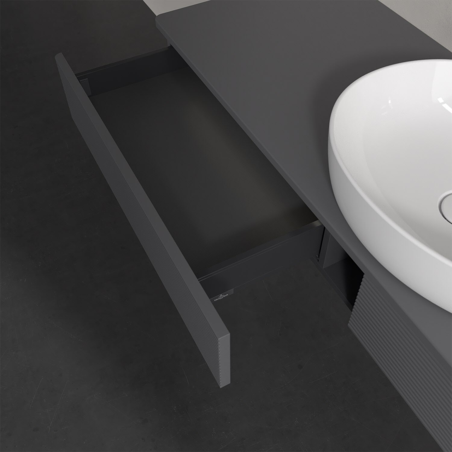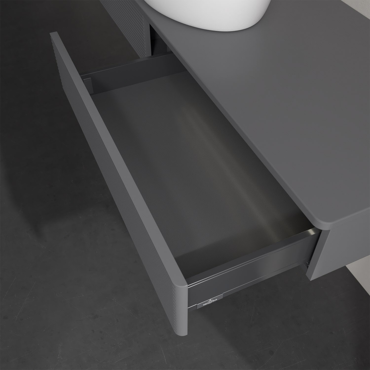 Villeroy & Boch Antao Waschbeckenunterschrank, 160 x 19 cm, 2 Auszüge mit LED-Licht, Front mit Struktur, ohne Hahnloch, für Waschtisch mittig
