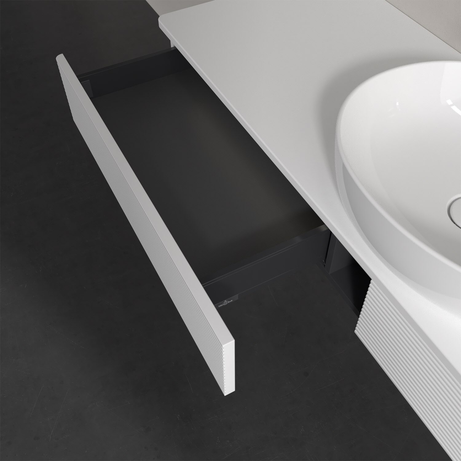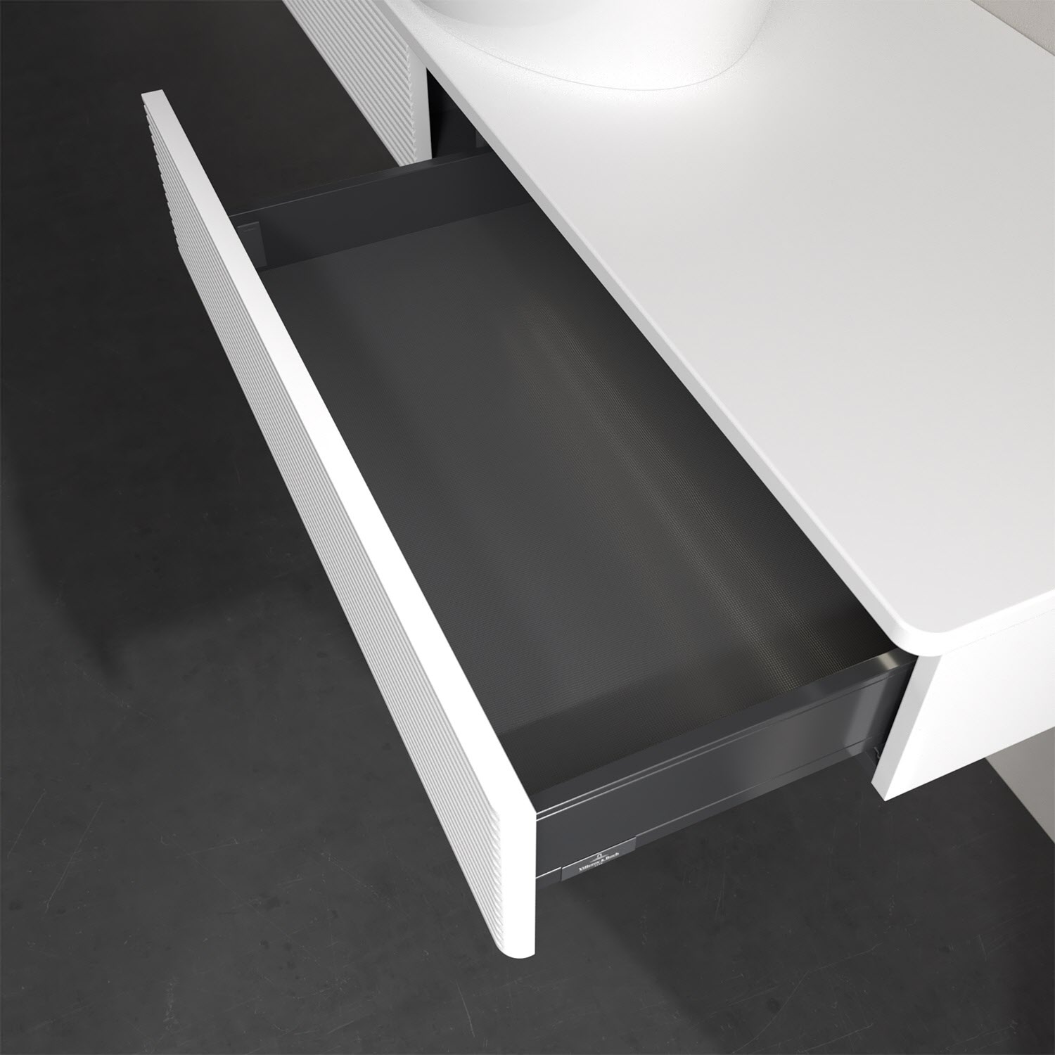 Villeroy & Boch Antao Waschbeckenunterschrank, 160 x 19 cm, 2 Auszüge mit LED-Licht, Front mit Struktur, ohne Hahnloch, für Waschtisch mittig