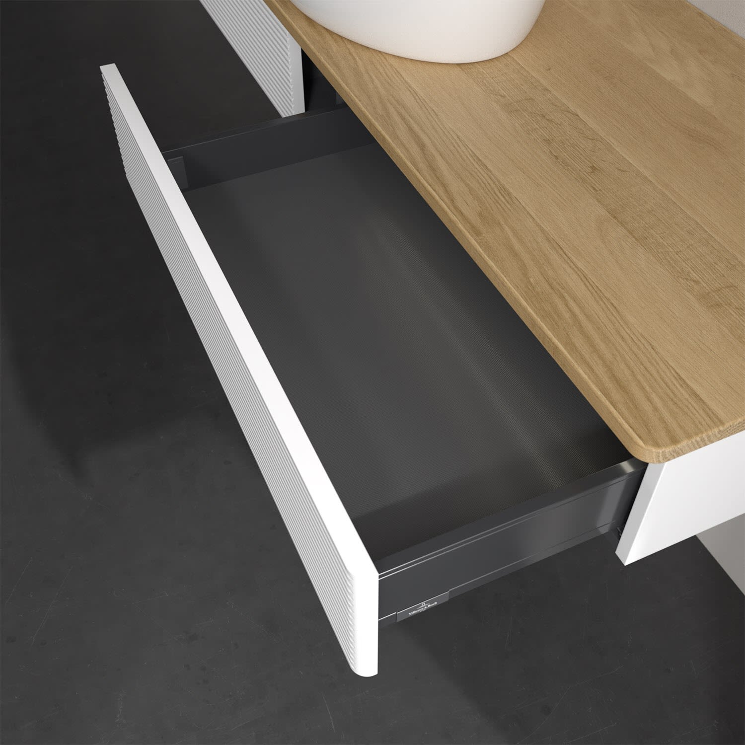 - kein Umfallen oder Verrutschen von Pflegeprodukten in den Schubladen dank rutschhemmendem Boden