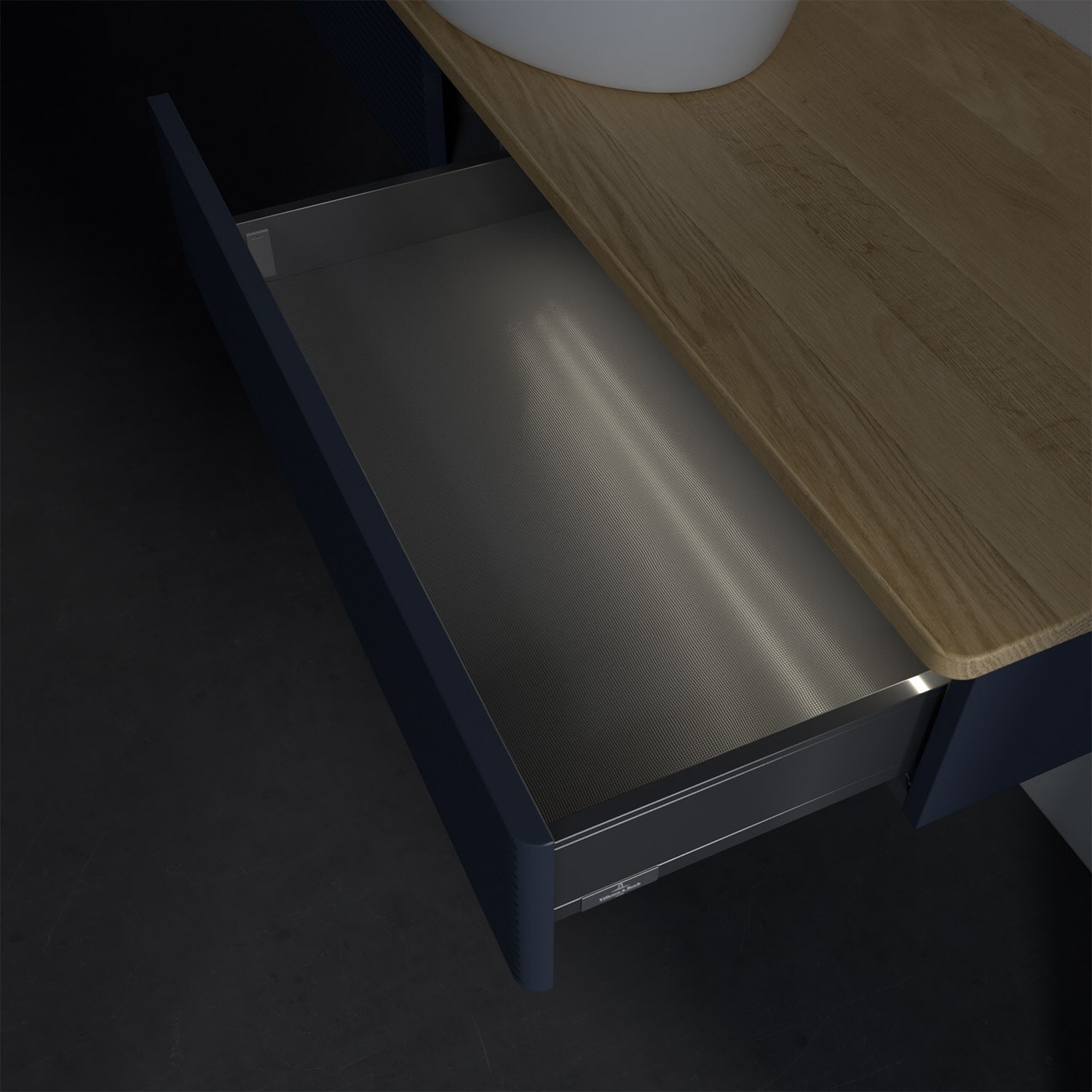 Der wandhängende Antao Waschtischunterschrank bietet mit seinem Auszug und seiner erstaunlichen Größe viel Platz zum Verstauen von Utensilien im Badezimmer. Dank des mittig platzierten Aufsatzwaschtischs gibt es seitlich weiteren Platz für Handtücher, Seifenspender & Co. auf der Waschtischplatte. Inspiriert von der Natur überzeugt der Unterschrank auch optisch mit sanfter Formsprache und abgerundete Kanten. Der grifflose Auszug mit strukturierter Front ist mit der Push-to-Open Funktion ausgestattet und verfügt über einen Antirutschboden, damit Utensilien sicher verstaut werden können. Den Überblick behält man dank der warmweißen Auszugsbeleuchtung, die sich automatisch beim Öffnen einschaltet. Mit seiner Vollauszug- und Selbsteinzug-Funktion ist der Schrank einfach praktisch und leicht zu bedienen. Qualität von Villeroy & Boch! Für eine besonders leichte Pflege sorgt die mehrschichtig deckend lackierte Oberfläche. Bei der Ausführung in Massivholz wird dank des verarbeiteten Massivholzes jedes Möbel zu einem Unikat, das sich durch das lebendige Naturmaterial durch seine einzigartige Struktur und Maserung auszeichnet.