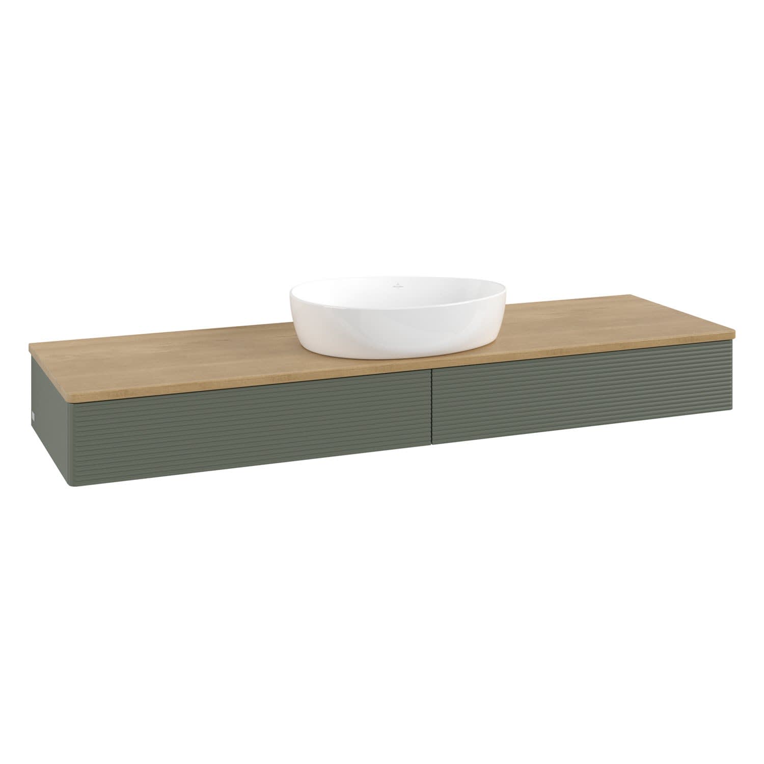 Villeroy & Boch Antao Waschbeckenunterschrank, 160 x 19 cm, 2 Auszüge mit LED-Licht, Front mit Struktur, ohne Hahnloch, für Waschtisch mittig