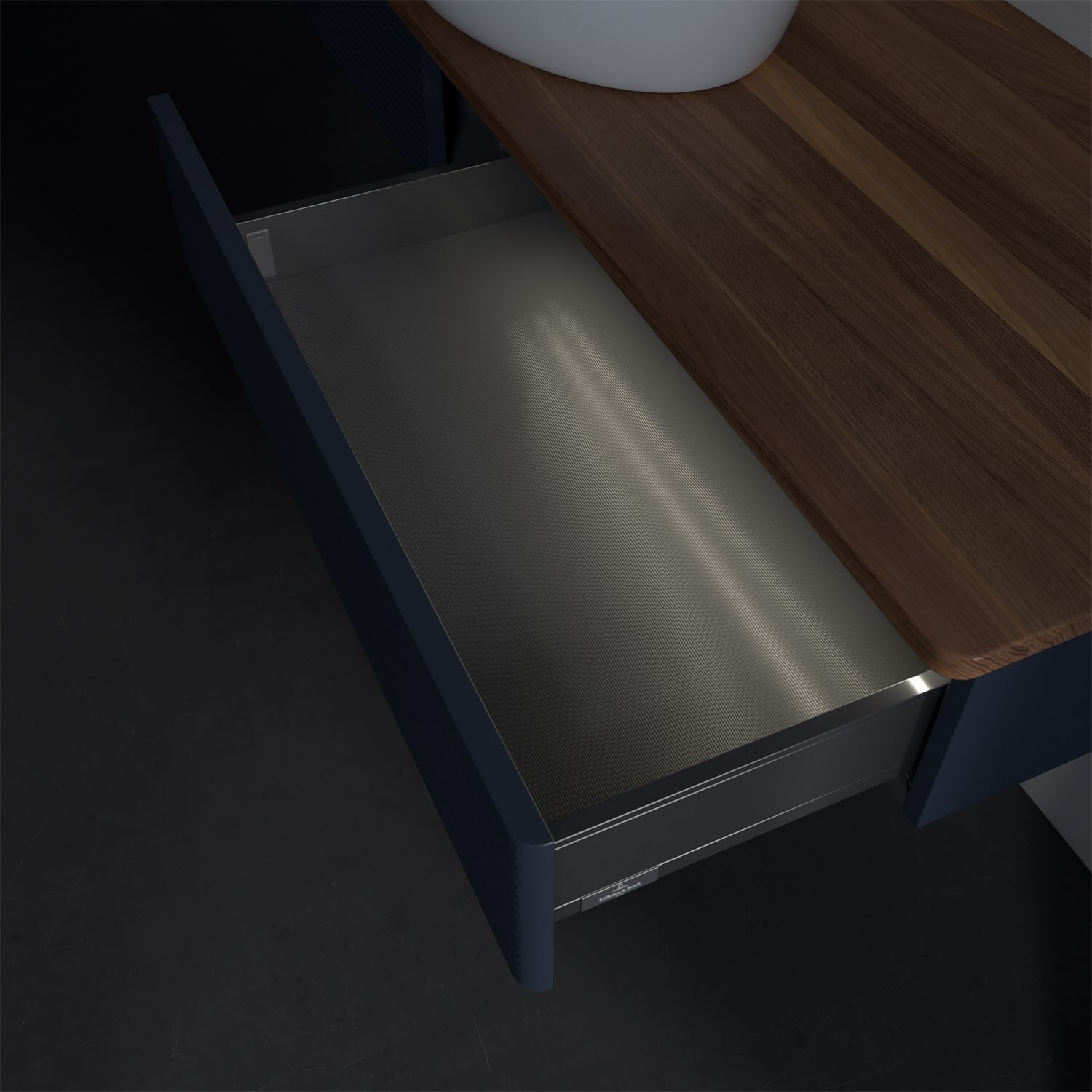 - in Schublade integrierte LED-Leiste mit warmweißem Licht zur Beleuchtung des Innenlebens