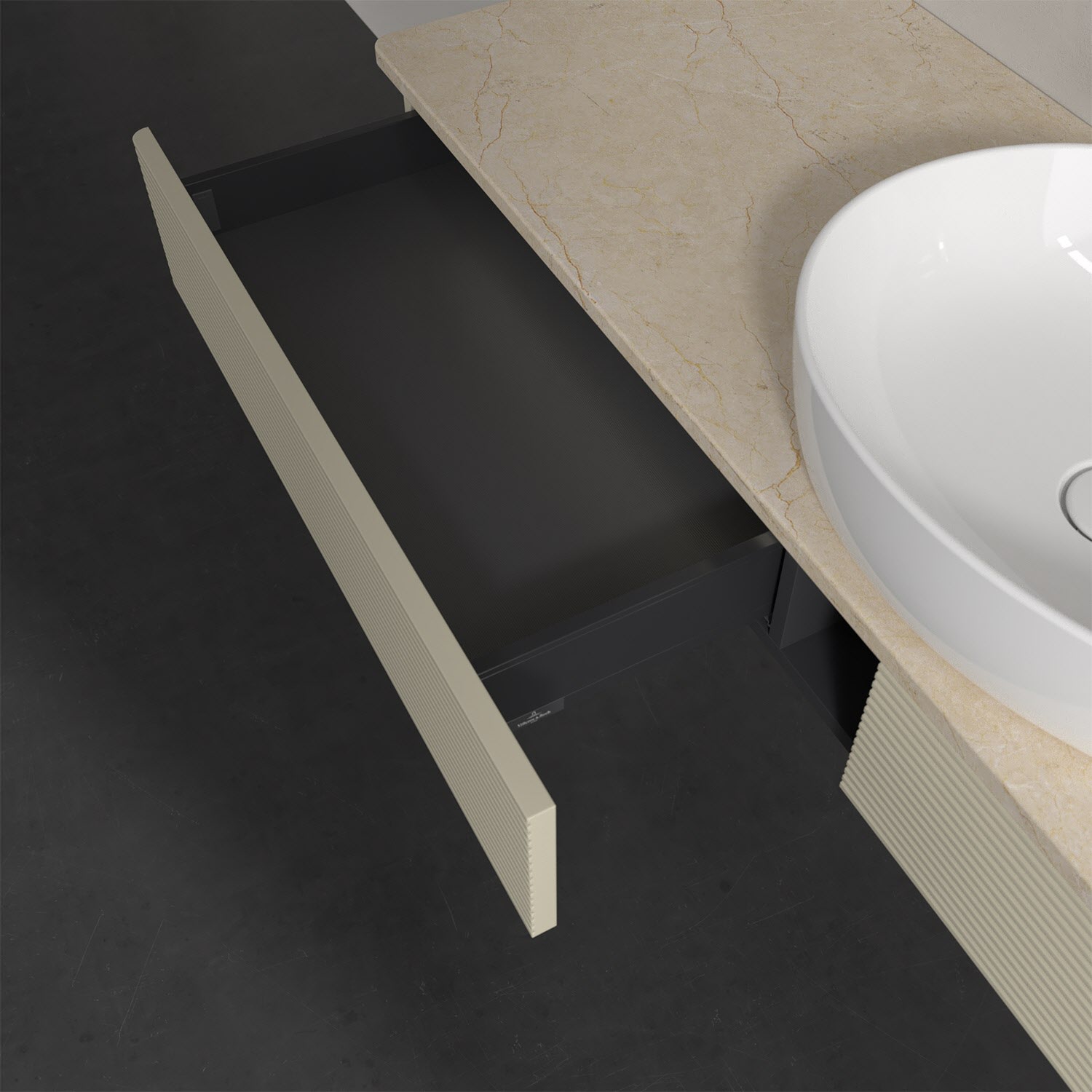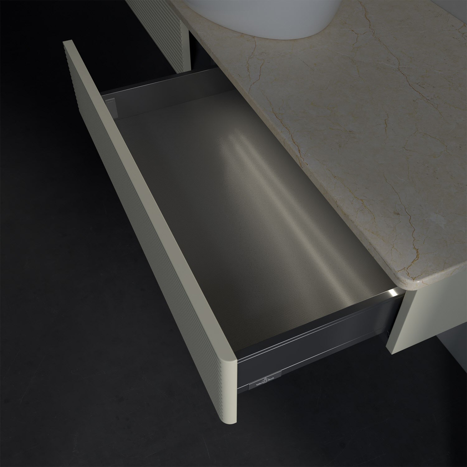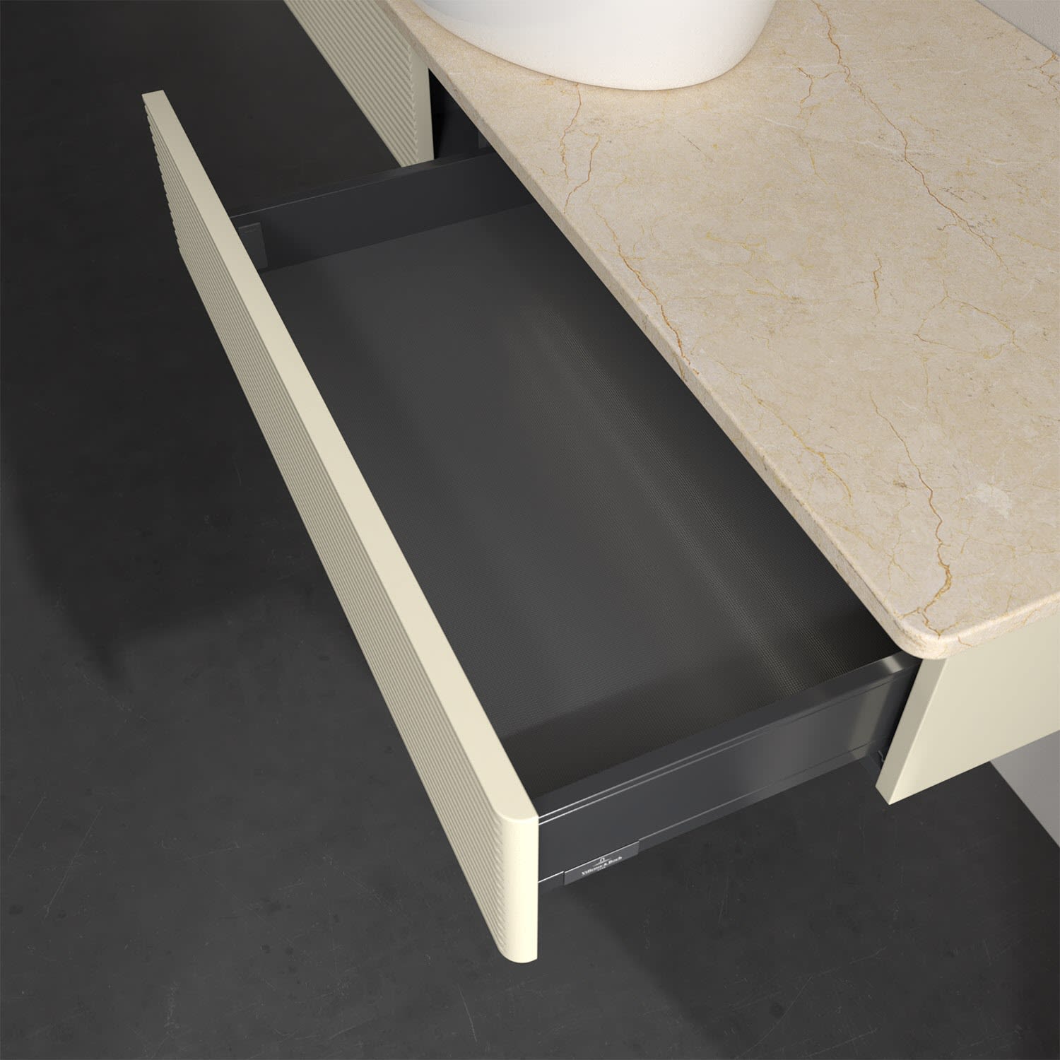 Villeroy & Boch Antao Waschbeckenunterschrank, 160 x 19 cm, 2 Auszüge mit LED-Licht, Front mit Struktur, ohne Hahnloch, für Waschtisch mittig