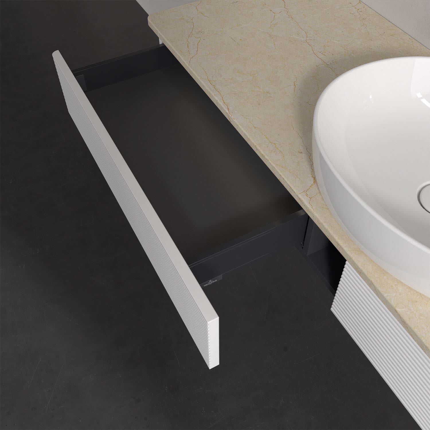 Villeroy & Boch Antao Waschbeckenunterschrank, 160 x 19 cm, 2 Auszüge mit LED-Licht, Front mit Struktur, ohne Hahnloch, für Waschtisch mittig