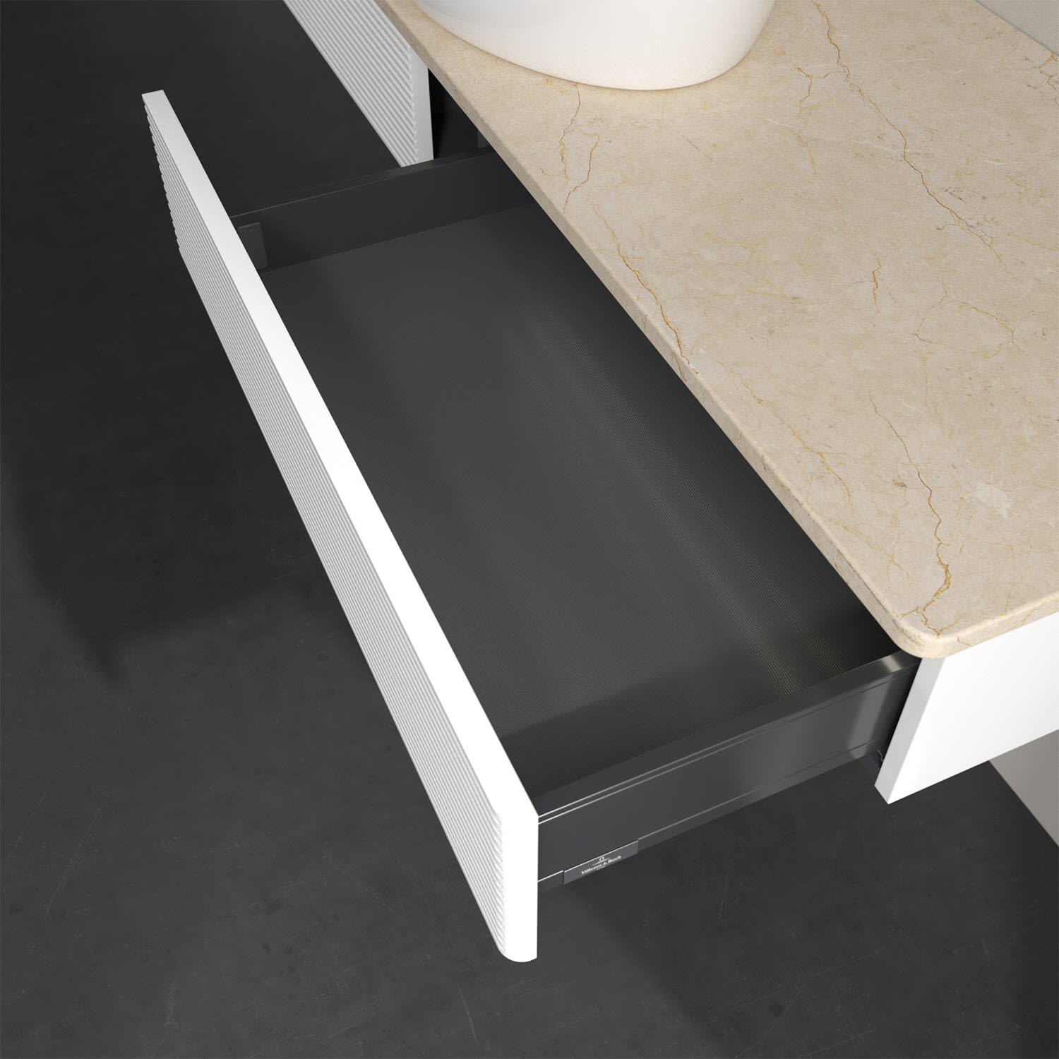 - kein Umfallen oder Verrutschen von Pflegeprodukten in den Schubladen dank rutschhemmendem Boden