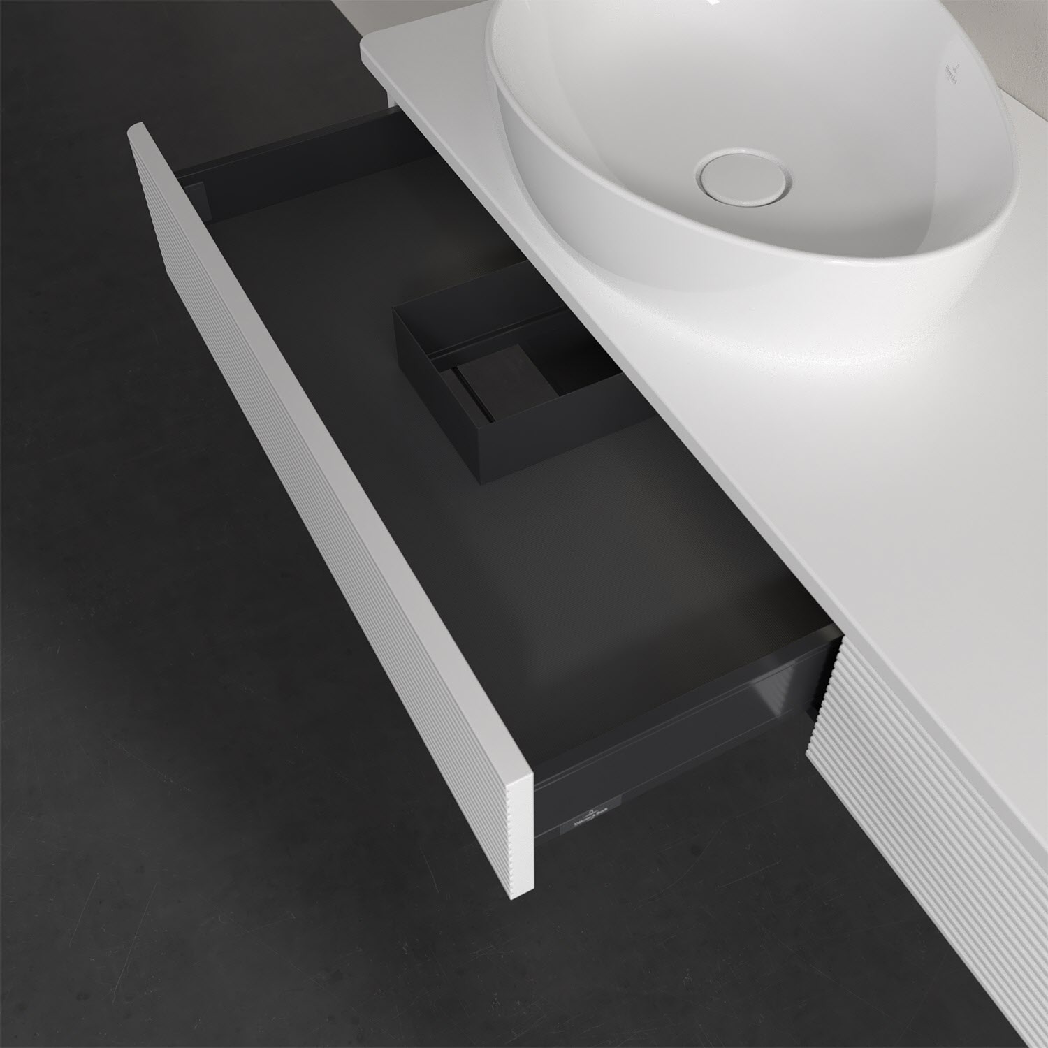Villeroy & Boch Antao Waschbeckenunterschrank, 160 x 19 cm, 2 Auszüge mit LED-Licht, Front mit Struktur, ohne Hahnloch, für Waschtisch links