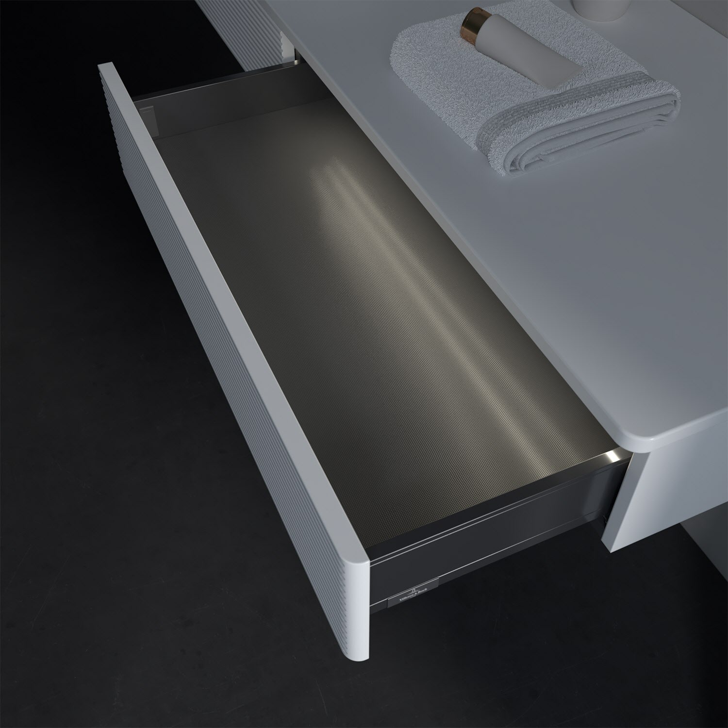 - kein Umfallen oder Verrutschen von Pflegeprodukten in den Schubladen dank rutschhemmendem Boden