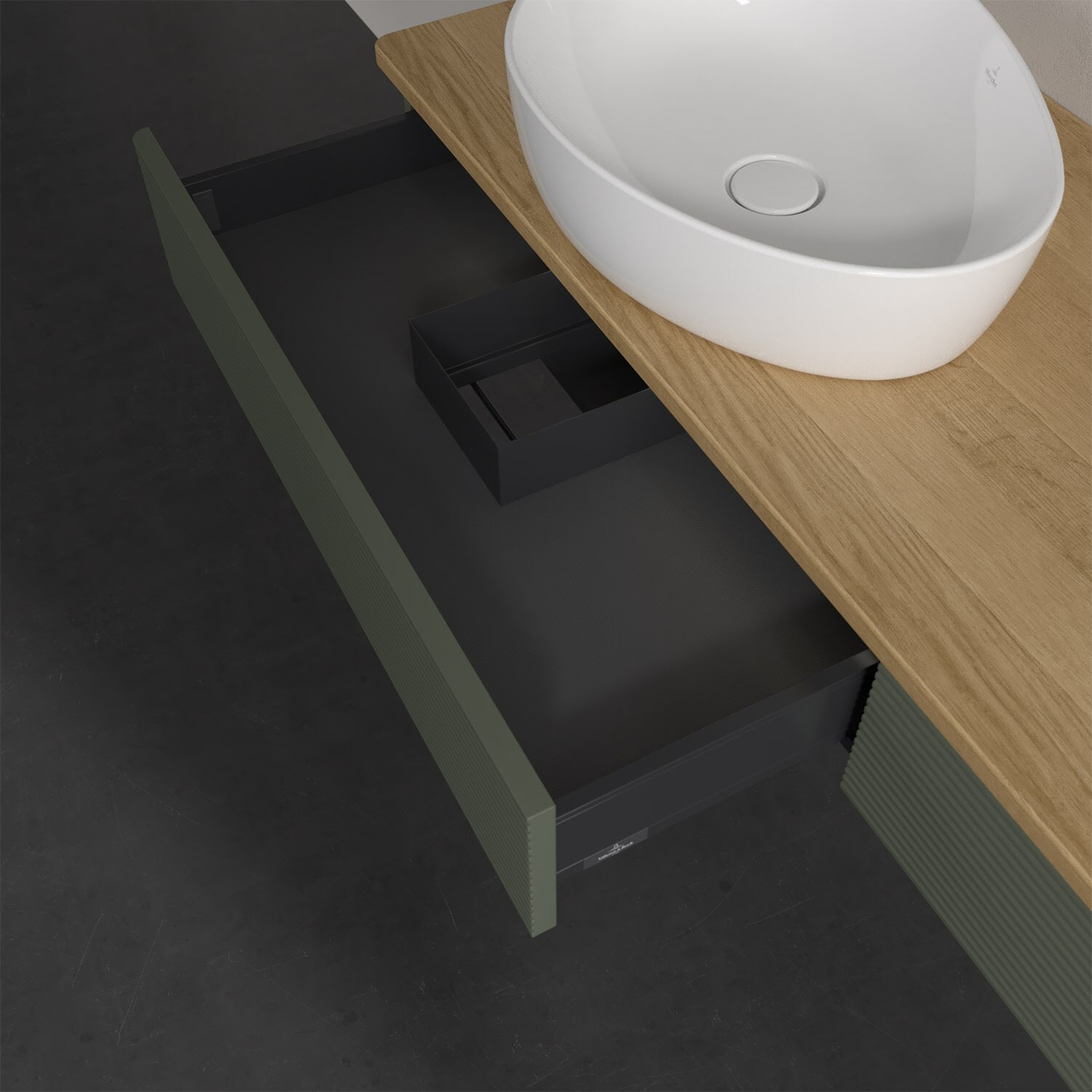 Für diesen Waschbeckenunterschrank stehen Ihnen Aufsatzwaschtische aus verschiedenen Serien zur Verfügung (siehe "Passliste" unter Downloads). Ein ausgewähltes Beispiel finden Sie im Zubehör. Den Waschtisch bitte separat mitbestellen.