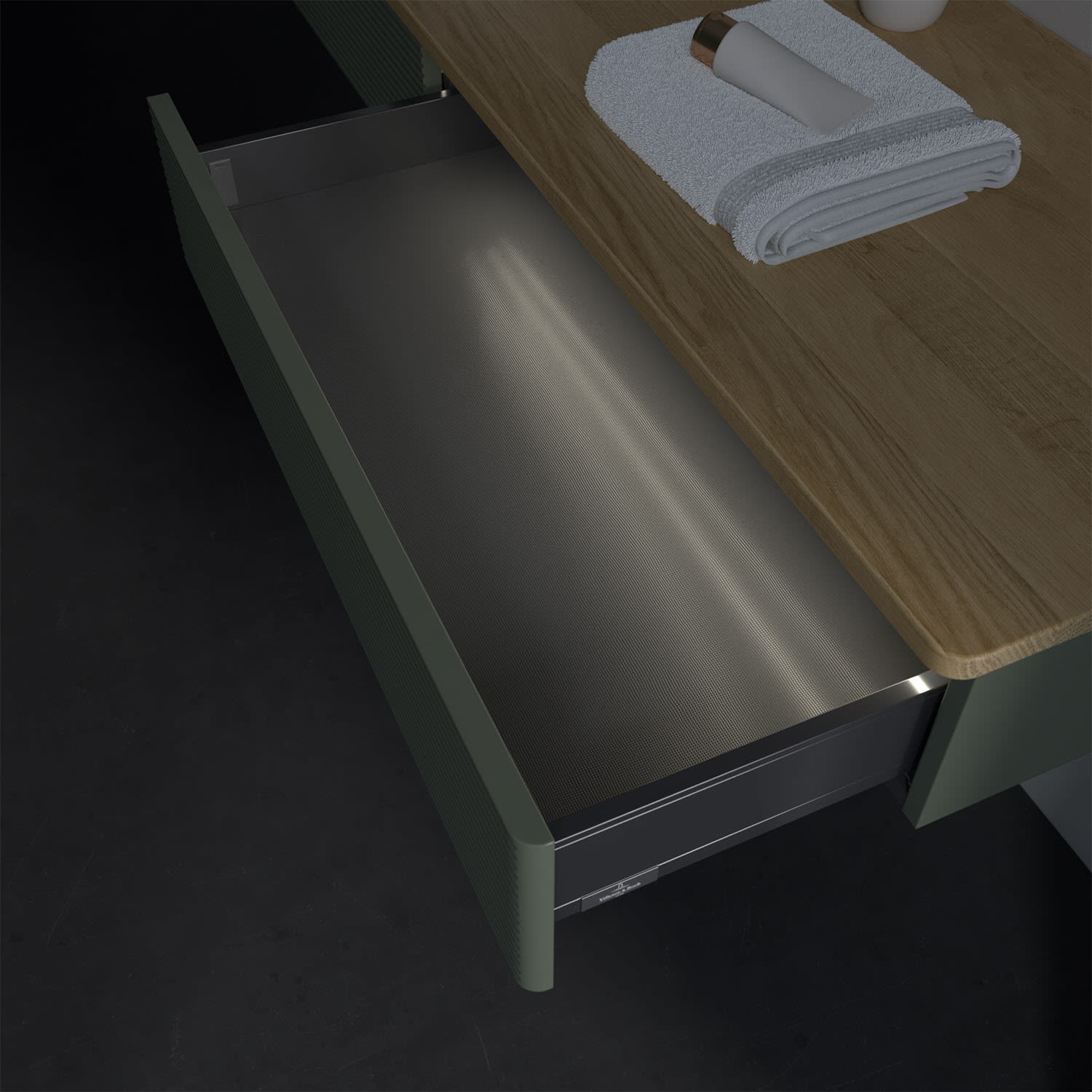 - kein Umfallen oder Verrutschen von Pflegeprodukten in den Schubladen dank rutschhemmendem Boden