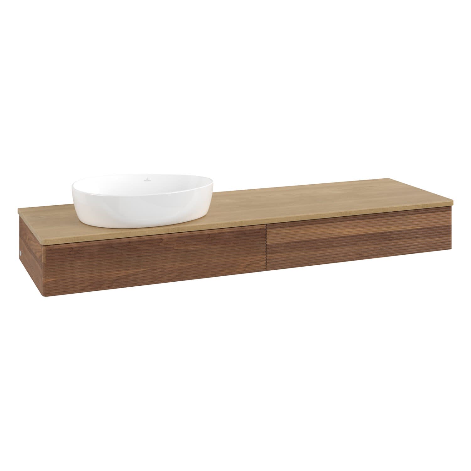 Villeroy & Boch Antao Waschbeckenunterschrank, 160 x 19 cm, 2 Auszüge mit LED-Licht, Front mit Struktur, ohne Hahnloch, für Waschtisch links