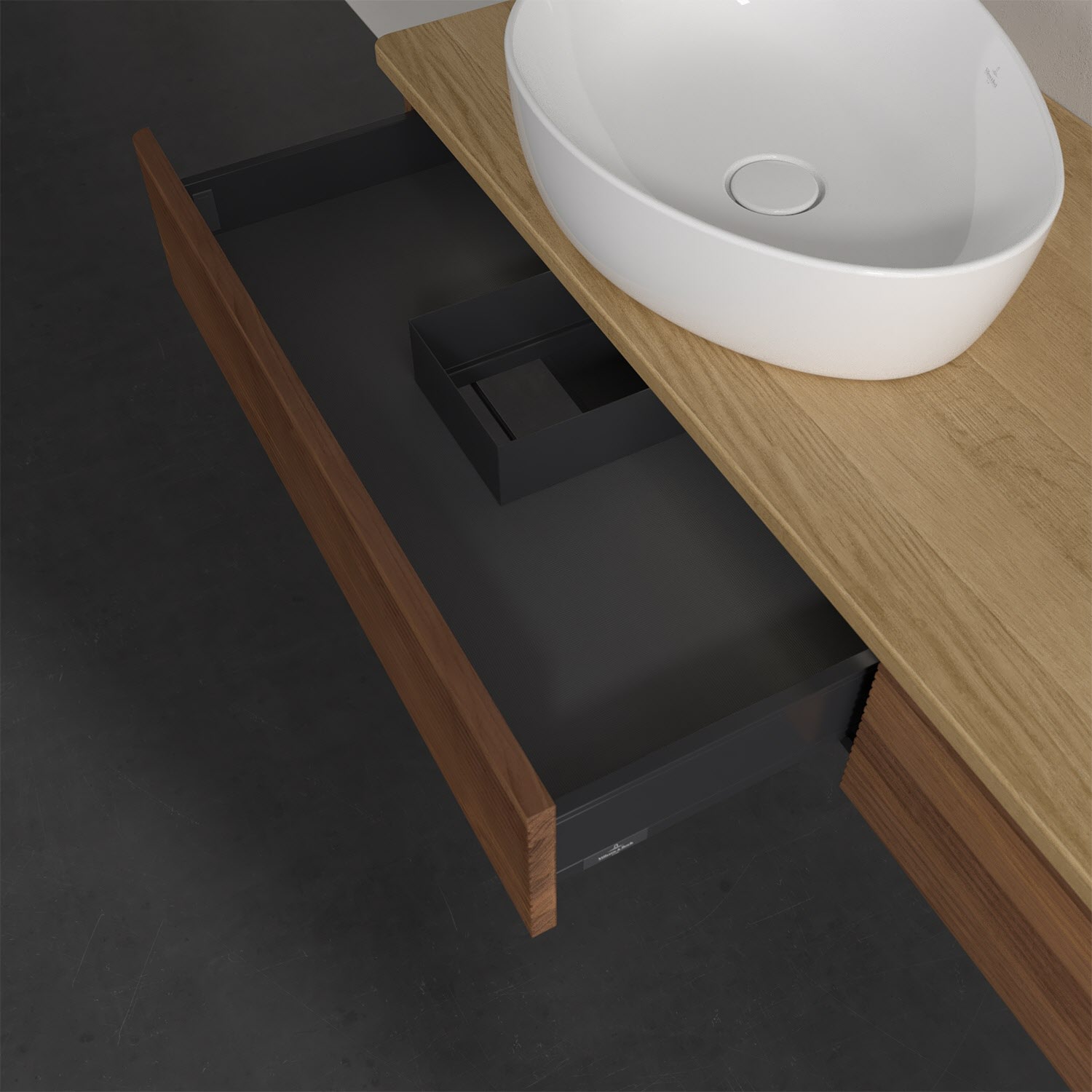 Der wandhängende Antao Waschtischunterschrank bietet mit seinen beiden Auszügen und seiner erstaunlichen Größe viel Platz zum Verstauen von Utensilien im Badezimmer. Dank des seitlich platzierten Aufsatzwaschtischs gibt es daneben weiteren Platz für Handtücher, Seifenspender & Co. auf der Waschtischplatte. Inspiriert von der Natur überzeugt der Unterschrank auch optisch mit sanfter Formsprache und abgerundete Kanten. Die grifflosen Auszüge mit strukturierter Front sind mit der Push-to-Open Funktion ausgestattet und verfügen über einen Antirutschboden, damit Utensilien sicher verstaut werden können. Den Überblick behält man dank der warmweißen Auszugsbeleuchtung, die sich automatisch beim Öffnen einschaltet. Mit seiner Vollauszug- und Selbsteinzug-Funktion ist der Schrank einfach praktisch und leicht zu bedienen. Qualität von Villeroy & Boch! Für eine besonders leichte Pflege sorgt die mehrschichtig deckend lackierte Oberfläche. Bei der Ausführung in Massivholz wird dank des verarbeiteten Massivholzes jedes Möbel zu einem Unikat, das sich durch das lebendige Naturmaterial durch seine einzigartige Struktur und Maserung auszeichnet.