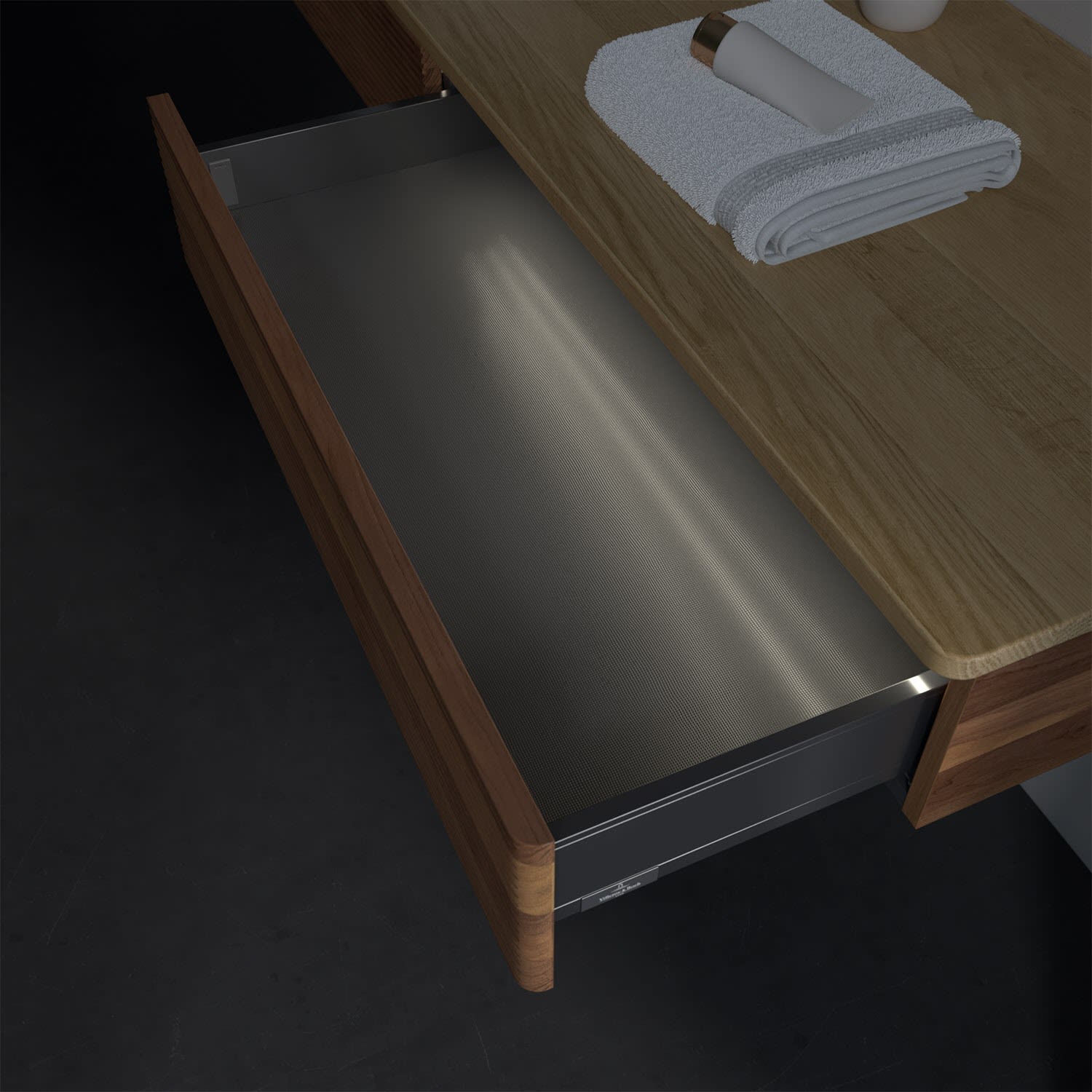 - kein Umfallen oder Verrutschen von Pflegeprodukten in den Schubladen dank rutschhemmendem Boden