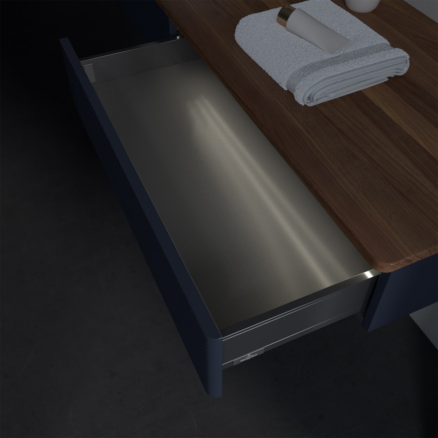 - kein Umfallen oder Verrutschen von Pflegeprodukten in den Schubladen dank rutschhemmendem Boden