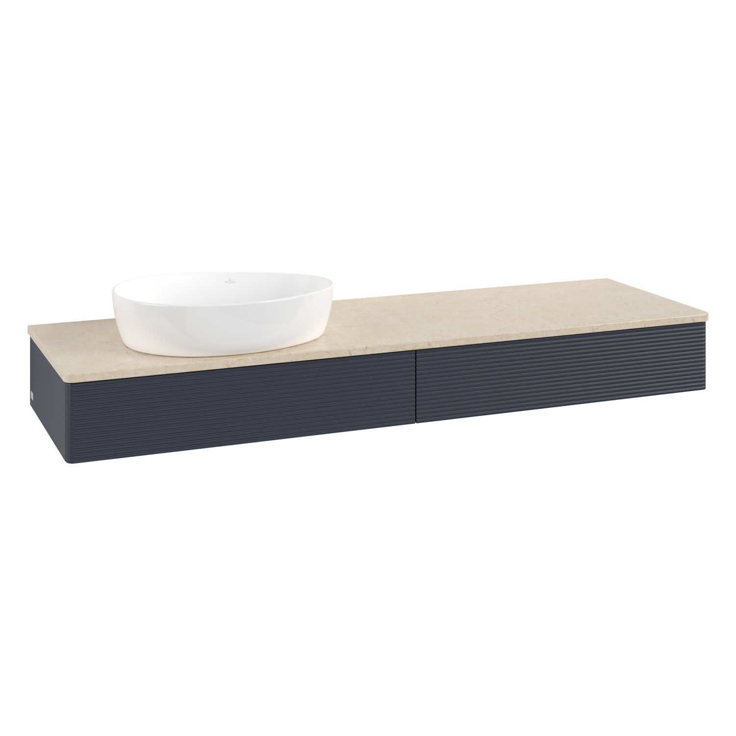 Villeroy & Boch Antao Waschbeckenunterschrank, 160 x 19 cm, 2 Auszüge mit LED-Licht, Front mit Struktur, ohne Hahnloch, für Waschtisch links