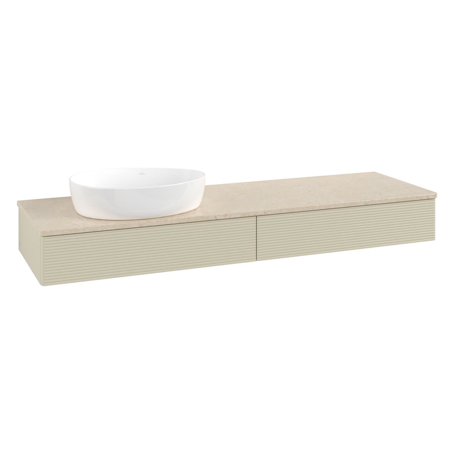 Villeroy & Boch Antao Waschbeckenunterschrank, 160 x 19 cm, 2 Auszüge mit LED-Licht, Front mit Struktur, ohne Hahnloch, für Waschtisch links