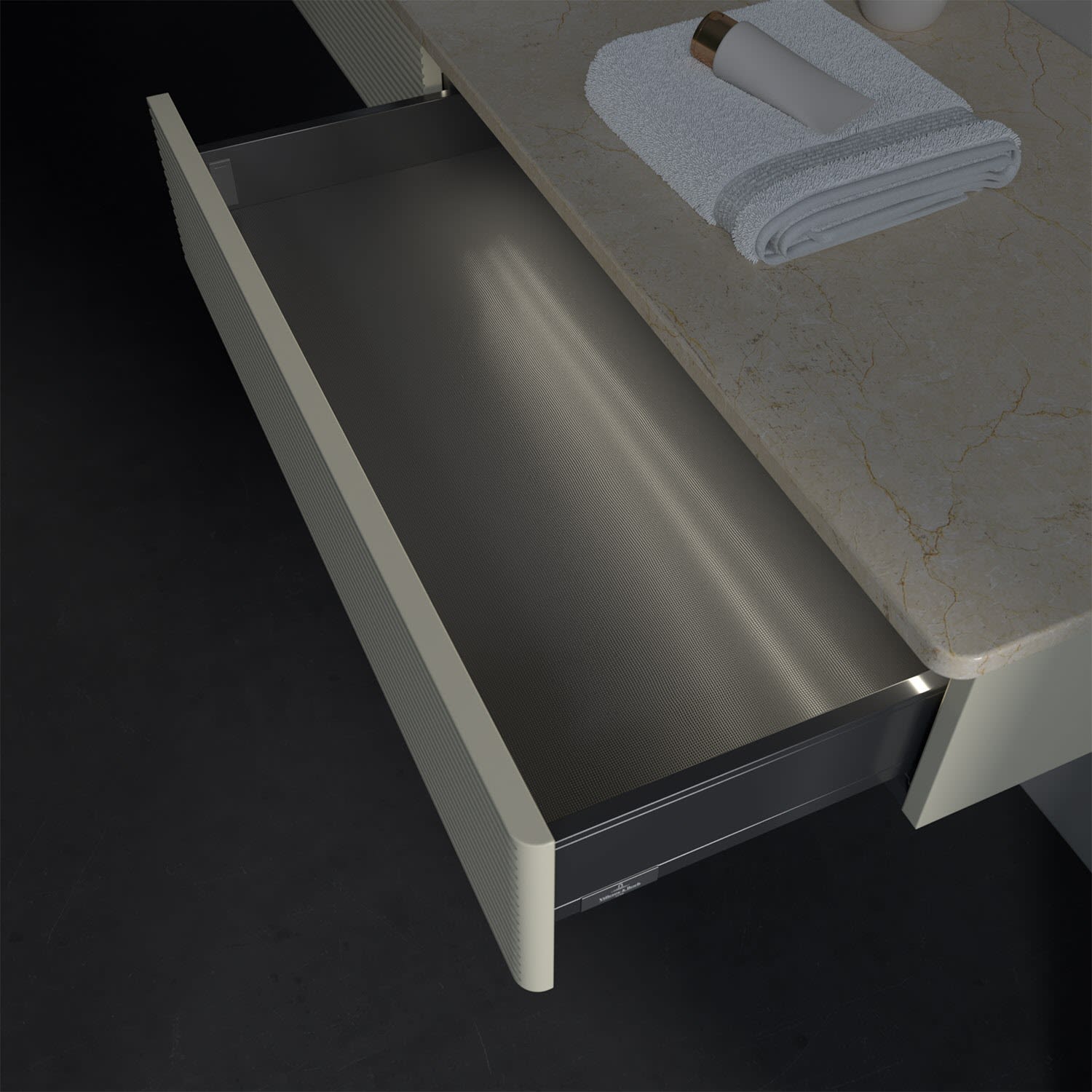 - kein Umfallen oder Verrutschen von Pflegeprodukten in den Schubladen dank rutschhemmendem Boden