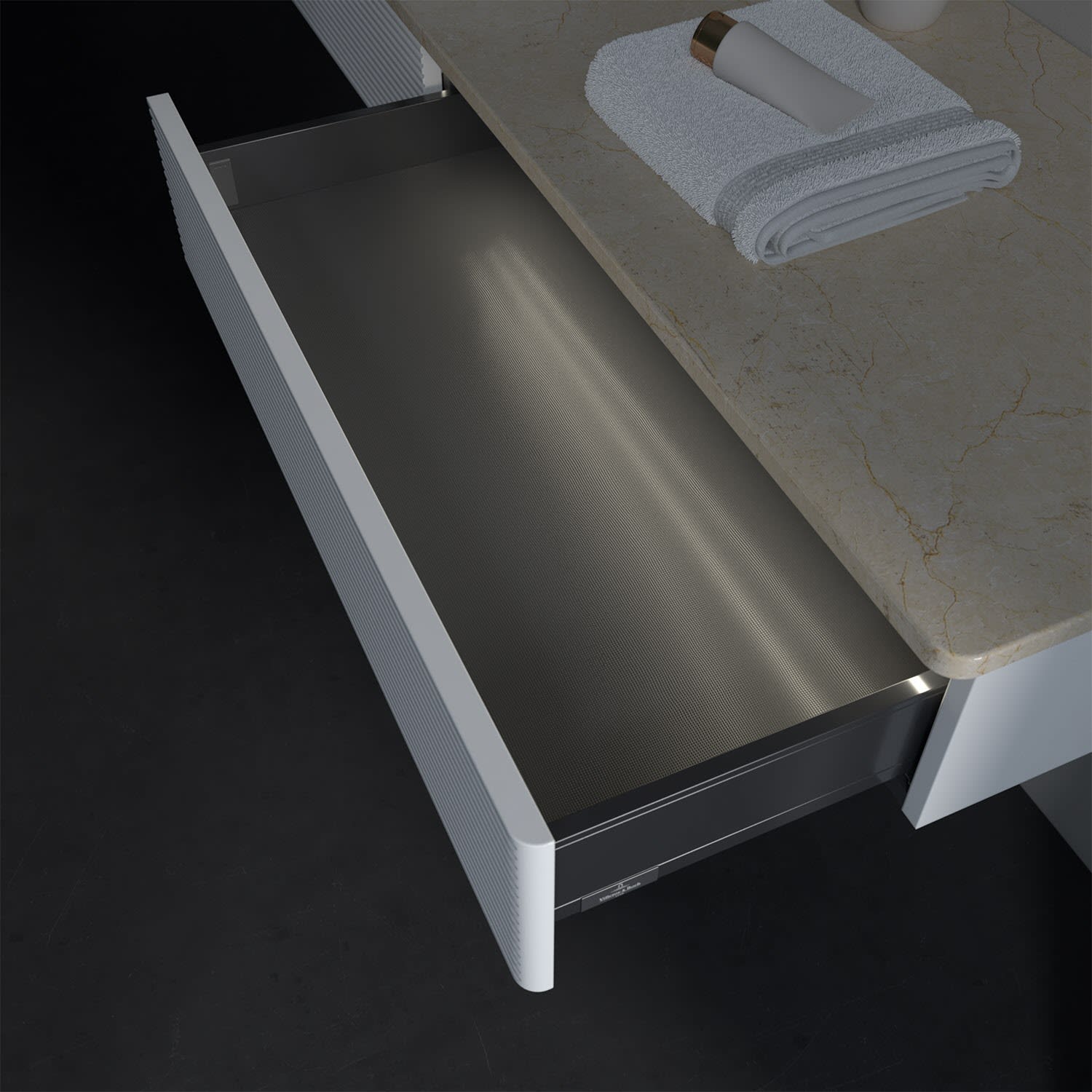 - kein Umfallen oder Verrutschen von Pflegeprodukten in den Schubladen dank rutschhemmendem Boden