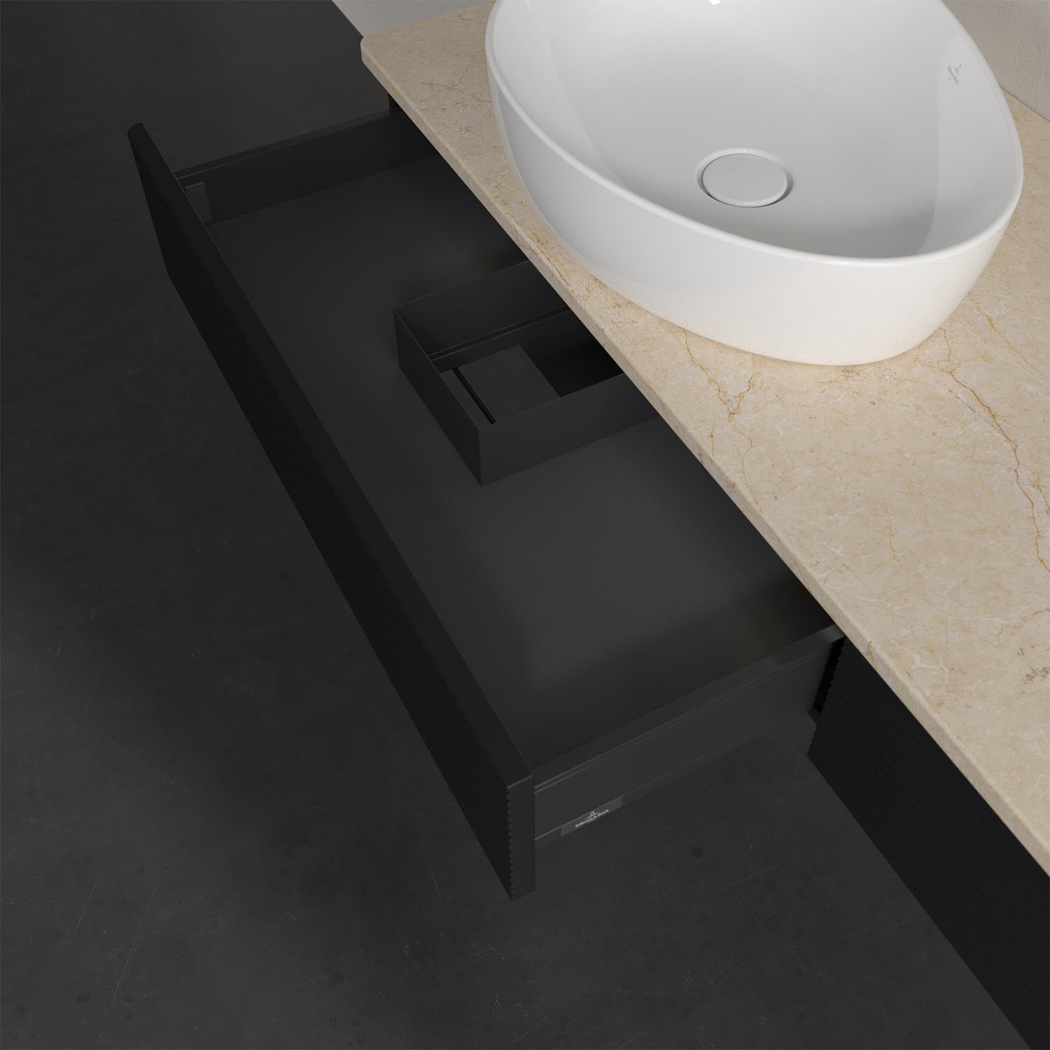 Villeroy & Boch Antao Waschbeckenunterschrank, 160 x 19 cm, 2 Auszüge mit LED-Licht, Front mit Struktur, ohne Hahnloch, für Waschtisch links
