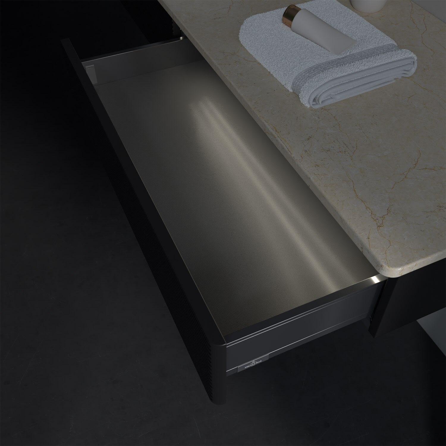 - kein Umfallen oder Verrutschen von Pflegeprodukten in den Schubladen dank rutschhemmendem Boden