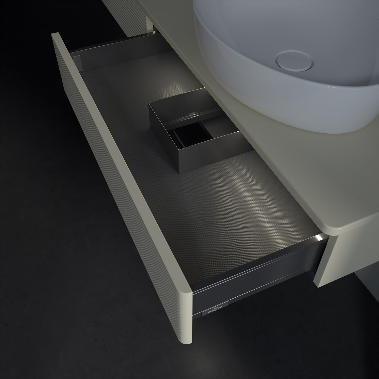 - kein Umfallen oder Verrutschen von Pflegeprodukten in den Schubladen dank rutschhemmendem Boden