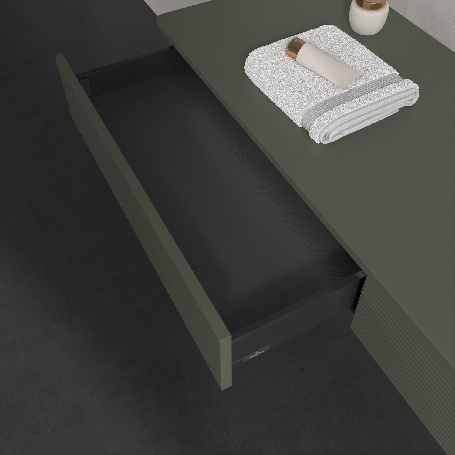 - kein Umfallen oder Verrutschen von Pflegeprodukten in den Schubladen dank rutschhemmendem Boden