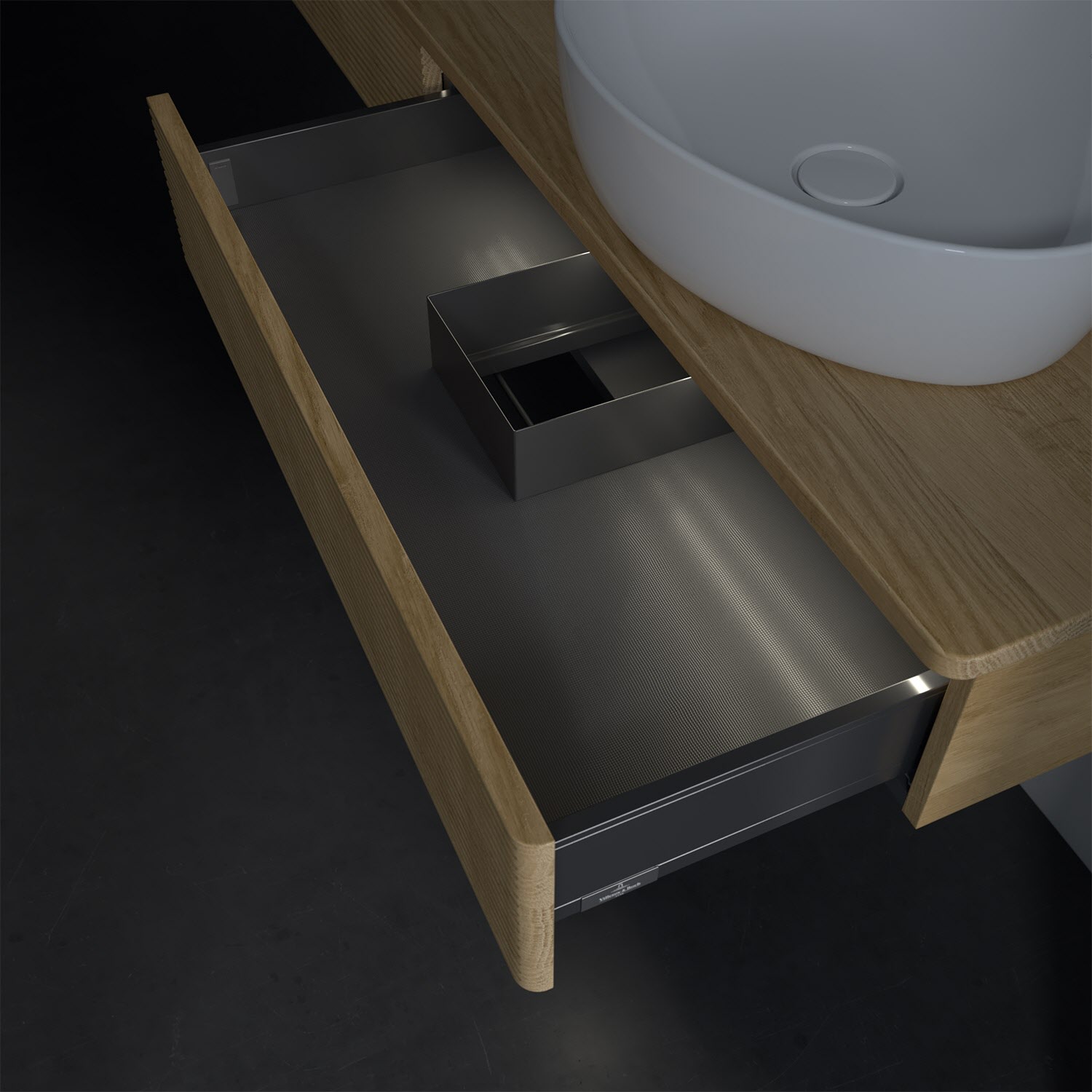 Villeroy & Boch Antao Waschbeckenunterschrank, 160 x 19 cm, 2 Auszüge mit LED-Licht, Front mit Struktur, ohne Hahnloch, für Waschtisch rechts