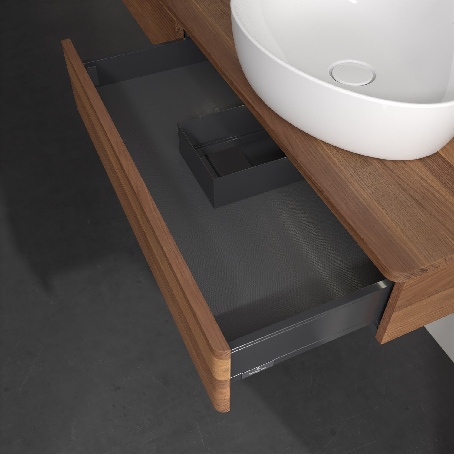 Der wandhängende Antao Waschtischunterschrank bietet mit seinen beiden Auszügen und seiner erstaunlichen Größe viel Platz zum Verstauen von Utensilien im Badezimmer. Dank des seitlich platzierten Aufsatzwaschtischs gibt es daneben weiteren Platz für Handtücher, Seifenspender & Co. auf der Waschtischplatte. Inspiriert von der Natur überzeugt der Unterschrank auch optisch mit sanfter Formsprache und abgerundete Kanten. Die grifflosen Auszüge mit strukturierter Front sind mit der Push-to-Open Funktion ausgestattet und verfügen über einen Antirutschboden, damit Utensilien sicher verstaut werden können. Den Überblick behält man dank der warmweißen Auszugsbeleuchtung, die sich automatisch beim Öffnen einschaltet. Mit seiner Vollauszug- und Selbsteinzug-Funktion ist der Schrank einfach praktisch und leicht zu bedienen. Qualität von Villeroy & Boch! Für eine besonders leichte Pflege sorgt die mehrschichtig deckend lackierte Oberfläche. Bei der Ausführung in Massivholz wird dank des verarbeiteten Massivholzes jedes Möbel zu einem Unikat, das sich durch das lebendige Naturmaterial durch seine einzigartige Struktur und Maserung auszeichnet.