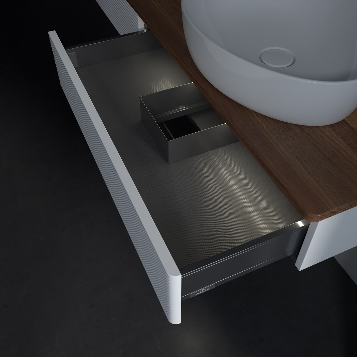 - kein Umfallen oder Verrutschen von Pflegeprodukten in den Schubladen dank rutschhemmendem Boden