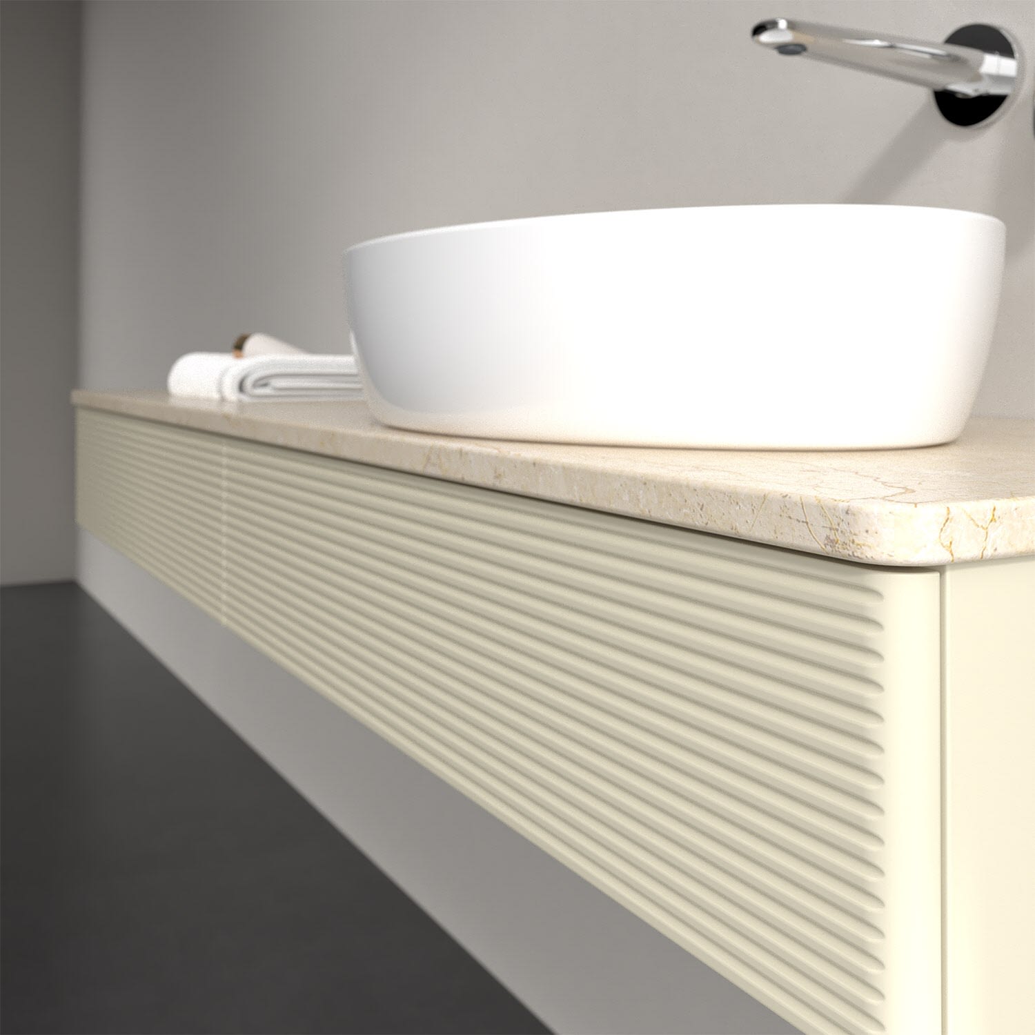 Für diesen Waschbeckenunterschrank stehen Ihnen Aufsatzwaschtische aus verschiedenen Serien zur Verfügung (siehe "Passliste" unter Downloads). Ein ausgewähltes Beispiel finden Sie im Zubehör. Den Waschtisch bitte separat mitbestellen.